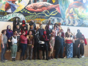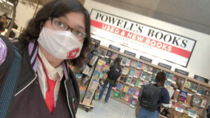 I flew into Kumori Con on Friday, October 31. I wore my Yomiko Readman (Read or Die) cosplay on the flight. As mundane was the Japanese-British librarian’s clothes were, I wanted to be ready to explore and navigate Kumo Con as soon as I landed in Portland. I have never been to Portland, this was my first time.