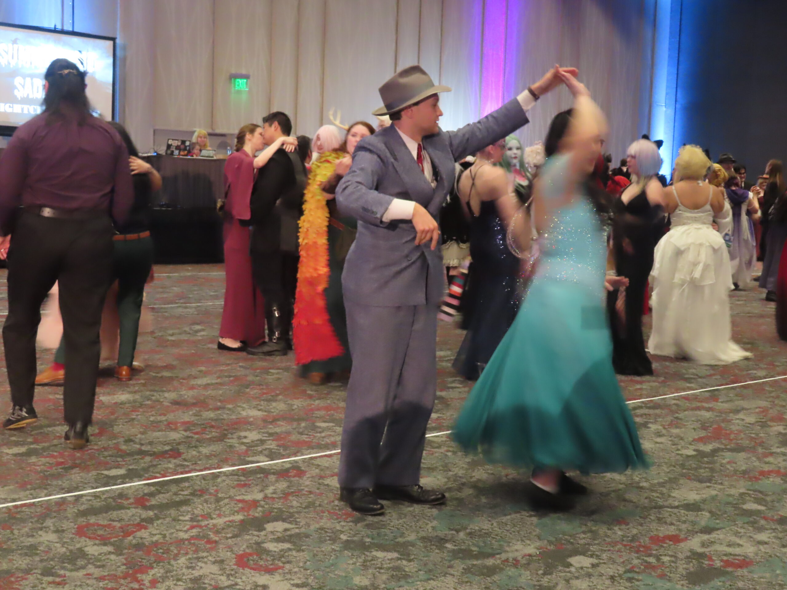 Programming was very strong for this smaller convention. Programming didn’t stop at 6PM. I stuck around for the ballroom dance on Saturday evening. Throughout the weekend, attendees can learn ballroom steps for free. I attended as girl type Ranma from the second Ranma ½ movie. Most of the tunes were from video games and classic ballroom songs. I was surprised to find that “Legends Never Die” from League of Legends appeared in the queue. My friends and I were belting out the song instead of dancing to a night club two step. I liked the geeky prom vibes and the effort the ballroom team put into this. I loved seeing everyone’s formal outfits and formal interpretations of characters.
