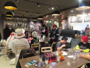 Panels were very strong at this convention. I liked that all the panels were all in one place. I referred to this area as the “couch zone.” I was curious about the Utena panel, but the panelist was a no show. Instead, we had a room full of geriatric millennial and gen x’er otaku in a room ready to discuss and re-live their adolescence through the OG sword lesbian anime. We just turned the panel into a roundtable discussion of “<Name> Didn’t Do Anything Wrong” and other unpopular Utena opinions. I also attended the Filk panel. I never attended a Filk circle since these are not common in the anime scene as much as the science fiction / fantasy scene. I felt there was a strong variety of fandom discussion panels, game shows, and “how to” thematic cosplay panels at Kumo Con. This is one of the most varied programming schedules I’ve seen on the west coast.