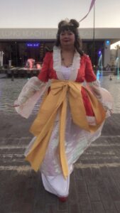 “Are you going to ALA this year?” “ALA is my favorite con!” Southern California loves ALA. If you could put it on a shirt with their purple-haired mascot, Ala, Southern California otaku aren’t afraid to say “I Love ALA.” This year, ALA’s theme was isekai. The lanyards indicated the infamous white isekai truck and a cardboard cutout of the white isekai truck haunted the car show in the exhibit hall. I cosplayed as Miaka from one of the OG isekai’s, Fushigi Yuugi. No need for white trucks, a cursed book teleported me to Ancient China.