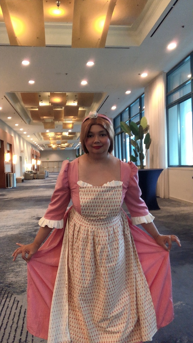 The vendors sold shirts, teas, and books. I stopped by the World Con Los Angeles booth and they were selling pre-orders of their fluffy mascot. There were a few custom Lego minifigure sets. A sewing machine company was also giving away a Bridgerton themed machine, and was also selling it at discount convention price. I also sought some blind box dealers, particularly one who had Regency themed cats. However, I spent most of my time at the small press area. This is where you could find indie authors and comic books. I took part in an indie romance author stamp rally. If you won, you would win a free Kindle. Sadly, I did not win a Kindle…but one would be nice so I can read ARC’s on there instead of my iPhone.