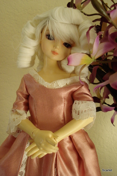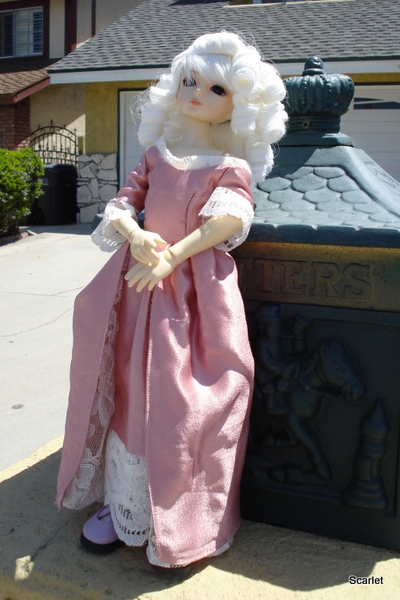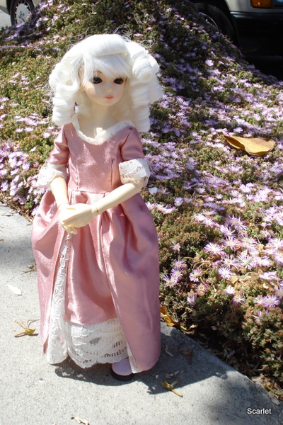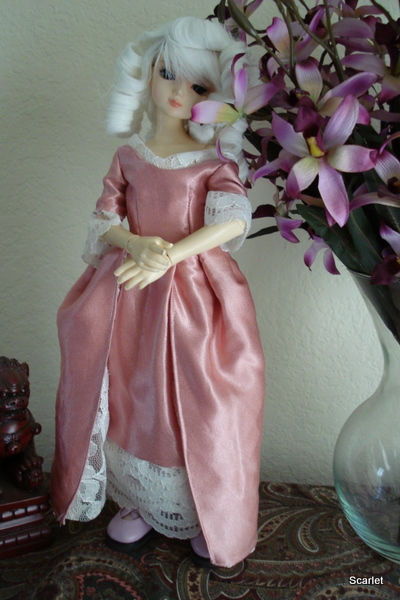 I really liked how this turned out. Even if it was a casual style Rococo dress, it really suited the doll very well. I liked my fabric choice. I did not have tulle as the instructions suggested to use, but I still have a ton of lace to use up.