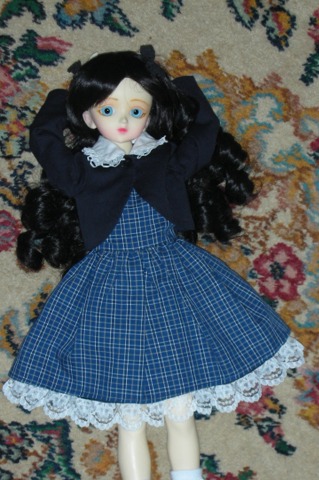 Cosette is often seen with either curly black hair or blonde hair. She has eyes to represent the dual simillarities to the family member who gifted her to me. She usually wears gothic lolita clothes and she will occasionally wear contemporary clothes.