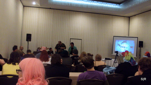 No matter what panel NerdFit is running, it exceeds all expectations. Ponies After Dark focused on My Little Pony adult fan art. If it exists, there must be porn of it, so says the rules of the Internet. The highlight of this panel was seeing people leave and NerdFit counting down how many people were fleeing the panel. By the end of the night, we had 18 people leave the pony porn panel. While the panelists were poking fun at ponies poking (and a Pokey cosplayer crashing the panel), we also had people read through some poorly written My Little Pony smutfic. The key was to keep a straight face as possible while reading through the down trotten clopper fest.