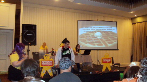Having missed last year’s waffle off, I decided to check out this Another Anime Con staple. This was one of your late night panels that focused on mindless fun. This panel was very interactive as there were physical challenges and waffle trivia. Physical challenges had people carve decorations on waffles to finishing a waffle while twirling on a hula hoop. I really did not know what to expect – I was under the impression this would be a generic waffle eating contest. However, it was really fun seeing people do silly things for free late night breakfast food. Veterans of the late night waffle off had a free sample of whipped cream to the mouth.