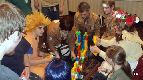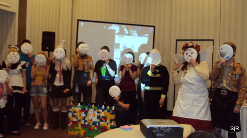 Because Attack on Titan has inspired many memes and series injokes, I was nervous going into this panel. I was worried this might be tween fangirls showing various parody videos and macros of naked titans. However, much like the Waffle Off, this was totally different than I was expecting. The panel had a very good turnout. Audience participation is a must. Megablocks were set aside on who can rebuild Wall Maria the fastest. Paper plates and markers were given out to draw your Titan face. Winners on who had the best Titan face were picked by the audience. Each person was given a different card to find out if they were part of the survey corps, royal guard, or actually titans. Instead of being a panel were people are locked behind a table and microphone, this got people off their seats – it’s almost like Double Dare, but Attack on Titan themed.
