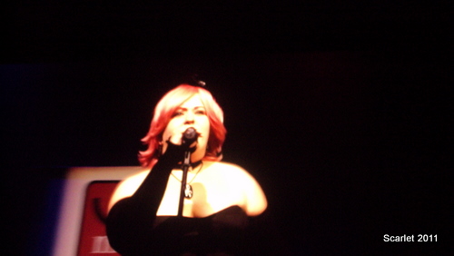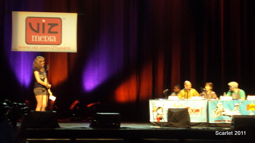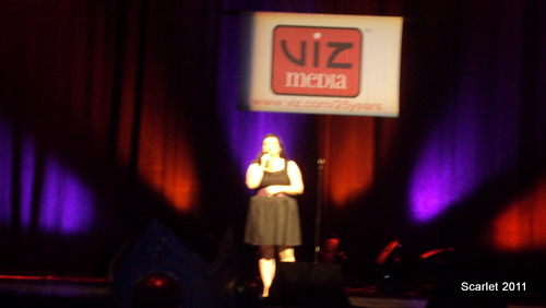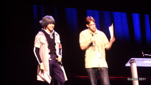 AX Idol: No Need for Coke Plugs! by Victoria Erica After seeing how fierce the competition was during the auditions round, I decided to attend AX Idol with fellow auditionee, Jeff B. AX Idol, like all main events, took place in the prestigious Nokia Theatre. For Los Angeles area locals, the Nokia Theatre is well known for hosting award shows and concerts. The show was running late, but the projector screens played clips of hillarious outakes from Durararra, Disappearance of Haruhi Suzumiya, and K-On. In addition, they also played snippets from Conan O Brien's visit to Bang Zoom Studios. The competition began half an hour past it's original start time. We were given profiles of the previous winners, Eric Kimerer and Mario Bueno. Bang Zoom also showed a highlights reel of Friday's auditions. Each of the finalists from the singing and voice acting round talked about what inspired their dreams to entertain others. The show was hosted by Jonathan Meza and Kyle Hebert. First, the judges were introduced. Eric P. Sherman, Kaeoko Sakamoto, Jason C. Miller, and Blake Smith were on the panel. The contestants who sang material from Full Metal Alchemist rocked the house. One in particular Mailorder who sang "Rewrite" from Full Metal Alchemist really put on a show. Rachel Heger sang "Mizu no Akashi" from Gundam Seed. Unlike most of the contestants, she performed a ballad. As the spotlight was on her, everyone began to raise their cell phones or cande apps (if they had iPhones). Even the judges were getting into the act. For someone who sang a very melodramatic ballad, she captured the audience. The voice acting round was equally as fierce. It was very pleasant to see talent among young otaku. For the voice acting round, the five finalists were given a scene from an anime to dub. Scenes were from Durarara, Disappearance of Haruhi Suzumiya, Blue Exorcist, and K-On. Jeff and I both agreed that everyone gave 110% and no matter who wins the title of AX Idol, a future in the entertainment industry was in store for them. By the time all finalists went on stage, it was anyone's game. The winner for singing was Rachel Heger. The winner for voice acting was Amanda Lee who did the K-On clip. Even when Amanda performed, Eric P. Sherman's first comment was to offer her a contract with Bang Zoom. Rachel would be recording a studio demo with Jason C. Miller. Amanda Lee would take a tour of Bang Zoom studios, audition for a project, and record walla with a loop group. Both winners recieved a year time supply of Hi Chew. Overall, it was a great show. The audience cheered everyone on. There was an immense amount of positive energy in the theatre. However, AX Idol only filled 30% of the theatre. I am surprised why no one really attends AX Idol. It's a free main event and you're guaranteed to be entertained. Check it out next year!
