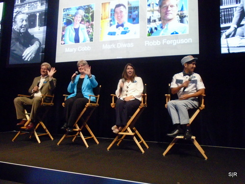 Cast members are what Disney calls their employees. In the theme parks section of the expo, Disney had stage set up where cast members can talk about their experiences and latest happenings in the park. While there were a few scattered park related panels in the archives room and a parks general panel in Hall D23, this was a stage where cast members can talk about what's currently going on in the parks. We stumbled into this one on accident because we needed a place to sit after walking for sometime and the cast member up front said they would give us front row seats. We couldn't say no that! For this particular panel, it was honoring cast members with 10+ years of services in the parks. There were three that were receiving the highest honor of Legacy status. Their name badges would get an upgrade to a blue pin rather than the white one. Blue pin cast members are often greeted with "thank you for your service" from park attendees. This presentation honored cast members who headed attractions, maintenance, and a lead on Luigi's Rollickin' Roadsters. Each cast member talked about behind the scenes stories and instances where they went above and beyond in the name of the mouse.