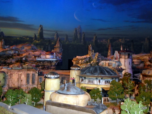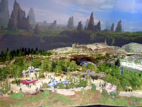 One of the most popular locations on the convention floor was the Star Wars area which featured exclusive art and models from the upcoming new region of Disneyland. It was later revealed to be called "Galaxy's Edge" but on day one it was still 'unnamed Star Wars region'. Even without a name it was still exciting to see all the posters and models for the region as those passing through made their guesses about the new region. The display that drew the most eyes was the scale model of the region which had three distinct regions an area that looked like Tatooine, another like Theed City, and an area that looks like earlier designs of Kashyyyk. Everyone was pumped up to see everything and it gave everyone high hopes for the upcoming new region.