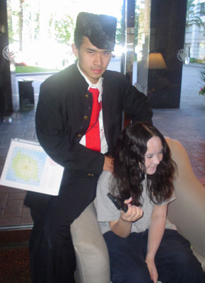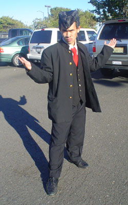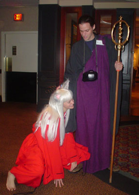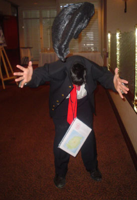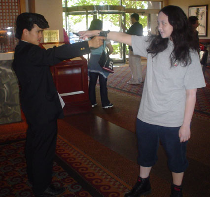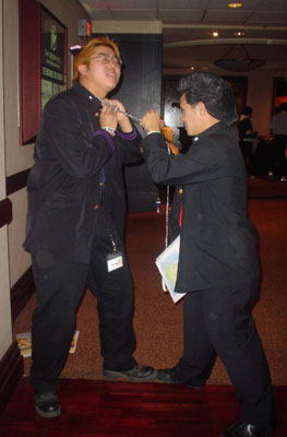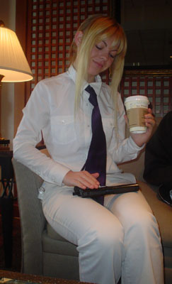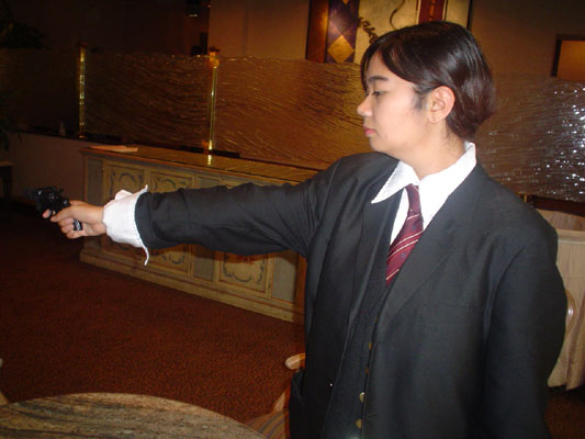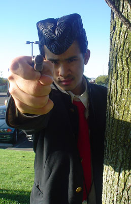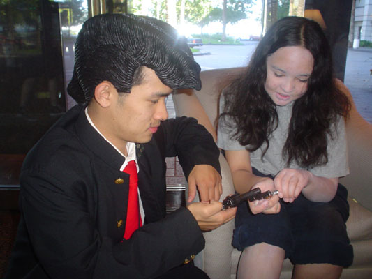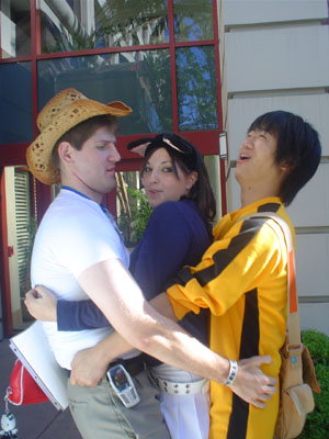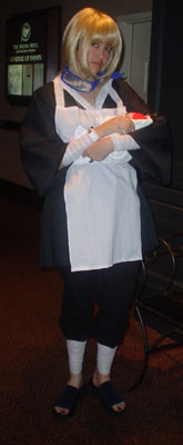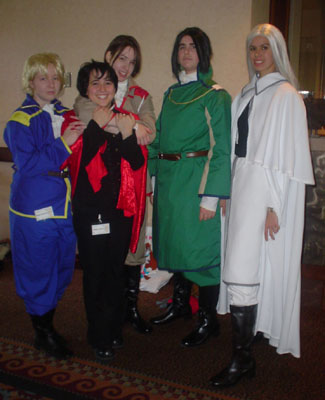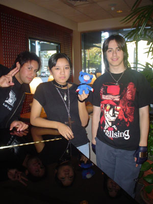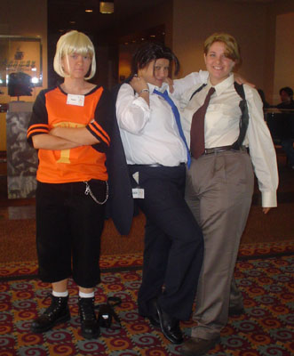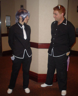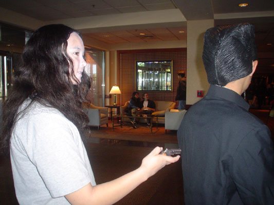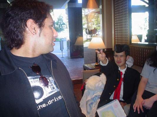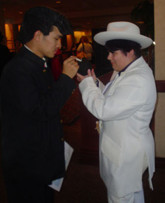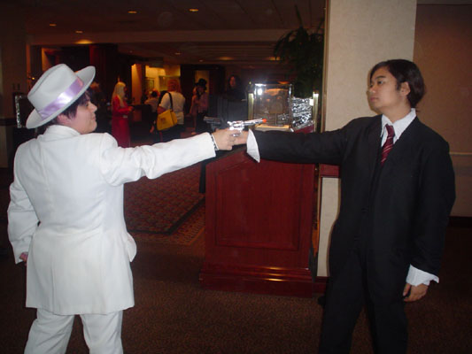 In Yaoi Con, fangirls are more dangerous than shotguns. Halloween arrived Sunday morning. I gathered the gear I needed for my Michael Corleone costume. The hardest task was getting the hair right. I kept rewinding the restaurant scene in part one to keep referring to Al Pacino's hair. In the end, I did what I could. Tom decided to be Zuki from the Battle Royale manga. Since the guy is gay, it would be appropriate for Yaoi Con. Eh...I just wanted an excuse to crossplay as Don Corleone. Though Yaoi Con was a weekend event, Traveling Valentine only showed up for the last day. The last day happened to take place during Halloween. Well, we decided we should just show up to chill with friends. However, most of our friends were either asleep or were in the con parameters when we got there. I ran into Eve for a quick moment. So, we ran into Hiku and friends. They dished the dirt what happened during the weekend. Something about stripping and the bishy auction. Oh well, to kill some time, Traveling Valentine took renactments pictures of the famous scene from The Godfather. For the most part, we just chilled out with Juan (you are f'in insane!), CJ, and Gladys. They were whoring my fedora around. A Wrath showed up and started gunning down Tom. We started comparing gloomy's and talk about the old days. And then Sunshine came out in her yakuza (ep 115) Prince of Tennis costume. I thought it would be useful for Black Hand (The Godfather Part II) photo ops. Though it is quite anachronistic for Michael Corleone to go against Don Fanucci. Finally, we were able to meet with Karisu, Richard, and the Chibiko. We went out to lunch in old town of Burlingame (I think that was it). They were in the mood for Mexican food, so we followed suite. Interesting enough, they were all out of the Mexican food that I dig, so I went for something new. Karisu and I talked about evil photographers. Funny, that's how we first met - at Yaoi Con during lunch talking about the same evil photographer! Thanks for bringing us out to lunch, Richard and Karisu! ^_^ We got back to the con area and decided to just hang out some more. I ran into Masako. I offered to help her with her things. (I forgot her wig! d'oh!) We were entertained by Juan's greatest hits. Apparantly, there are things that Tom hasn't told me. The truth comes out in Juan's songs. We also met up with other people who showed up later. Tom said he spotted a Nando and an Elly. We ran into Soujiroh, Matt (all the way from SoCal), Cheryl, Yami, and Sergio. Afterwards, we were about done with the con. Tom had to leave early so he can be home early. We took final Battle Royale pictures on the outside. We then went back to San Francisco State and napped on the sofa. We were that tired! Pictures are copyright by Victoria Erica. If I took your picture, feel free to use it on your site or cosplay gallery. If you want me to remove something, kindly email me. While you're here, do sign the guestbook. This site was brought to you by the font Action Is. |