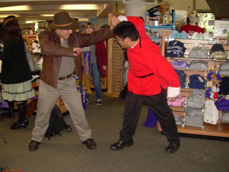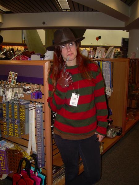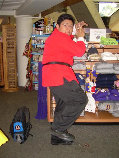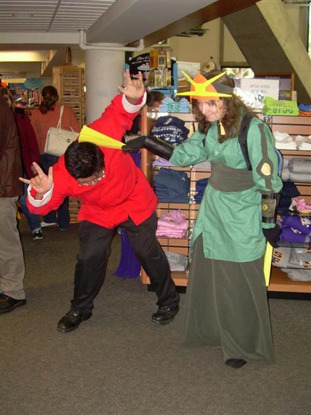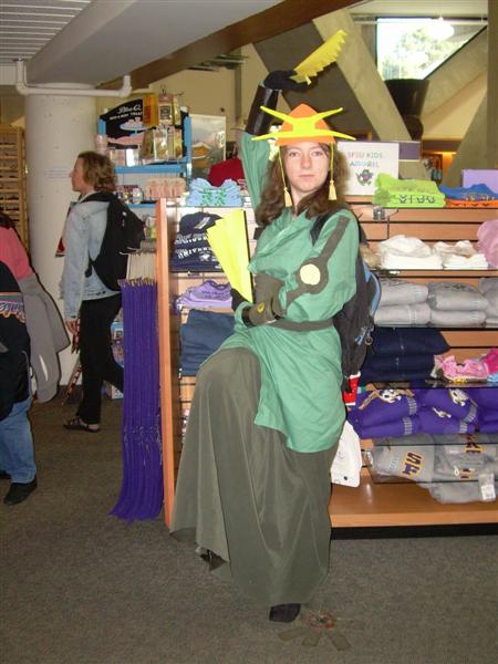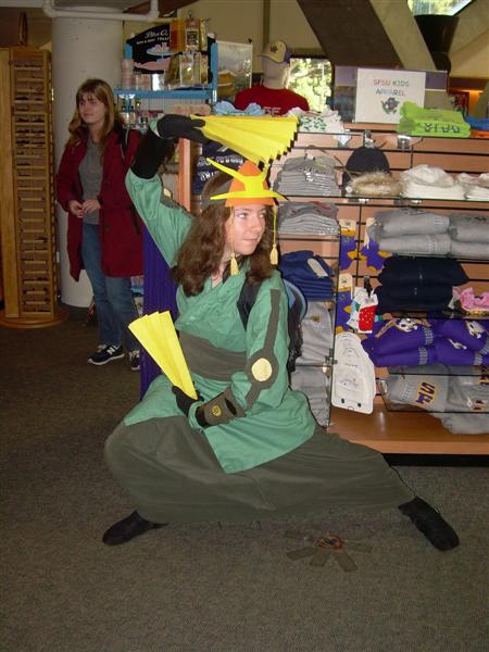 I'll say that Halloween at my school, San Francisco State, was much improved from previous years. Even my roommates dressed up for the occasion. The bookstore even gave away $10 giftcards for people who dressed up. I dressed up as Disney's Mulan. The costume was comissioned by Pegasus Maiden. I recieved many compliments for my costume. Thank you once again, Peg! Other than school, there was not much Halloween related festivities going on. I had class from 9 to 5 that day. I had to catch the Cal Train the first chance I could get to the Winchester. Here are photos from my school's Halloween costumers. Pictures are copyright by Victoria Erica. If I took your picture, feel free to use it on your site or cosplay gallery. If you want me to remove something, kindly email me. While you're here, do sign the guestbook. This site was brought to you by the font Cherry Coke. |