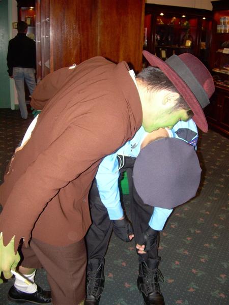 Every year, Tom and I go to Eurobeat King's Halloween gathering. People ask me why I don't go out to the Castro. Simply put, that area is not a costume friendly place when it's jammed pack and people either have a ciggarette or a drink in their hand. Not good. So, Tom and I take this safer alternative by going down to the Winchester in costume. Tom dressed up as Stubbs the Zombie from the video game of the same title. I met a zombified Tom at the Cal Train station. From his workplace, we headed straight to the Winchester Mystery House. There were many tours going on. However, our party always does the garden tour. Several of our friends were there from Hitori to Bart Boy. Of course, Albert was snapping photos like the cosplay photographer he is. After the get together, Tom and I went ahead to the Chilis right across the street. We were getting really hungry and Tom had to wash up himself asap! After dinner, Eurobeat King's group came in. We sat down with them for a little bit before hitting the road. Thanks Eurobeat King for hosting another Winchester get together! Pictures are copyright by Victoria Erica. If I took your picture, feel free to use it on your site or cosplay gallery. If you want me to remove something, kindly email me. While you're here, do sign the guestbook. This site was brought to you by the font Cherry Coke. |