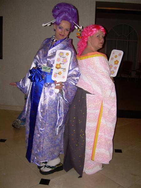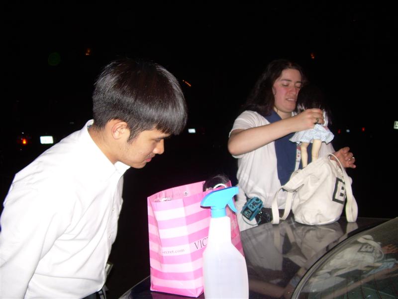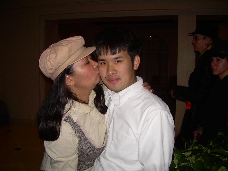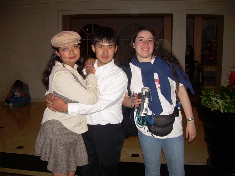What's the scariest convention in town? Yaoi Con of course! You never know when a fangirl will strike with a yaoi paddle from the bushes. You never know if a fangirl will force you into unspeakable random acts of yaoi, especially if you're a cute Asian male like Tom. You never know if a fangirl will proclaim that Yuki and Kyo are hot for each other as gospel truth. You get the idea. It was that time of the year again, and Yaoi Con was among us. Okay, I'll say this straight out. I. Don't. Like. Yaoi. It doesn't appeal to me. I like my (underrated) straight het couples. Though it is pretty sad that 90% of hentai is all rape. That just leaves the Chiho Saitou and Ai Yawaza shoujo sex for gals like me. So what was a gal like me doing at Yaoi con? Shooting! If shooting is involved, Traveling Valentine is definately there. This time, we brought a Claudine along with us for the ride. Our friend Claudine had this crazy idea to create Night of the Living Fangirls Part 2. The sequal would take place at Yaoi Con. Take a wild guess who gets to star in it? Tom and Victoria! Suffice to say, we shot what we could at Yaoi Con. Unfortunately, we could not get a lot of extras for our shoot. It was Saturday and people were gearing up for masquerade and the bishounen auction. However, plenty of thanks to the convention attendees who volunteered to be in our video. After our little stint at Yaoi Con, we went to dinner at the Serramonte Denny's. Of course, Claudine and I brought our dolls - Mini Me Lady Saiyan and Eponine. They enjoyed themselves to a few good treats as well. Pictures are copyright by Victoria Erica. If I took your picture, feel free to use it on your site or cosplay gallery. If you want me to remove something, kindly email me. While you're here, do sign the guestbook. This site was brought to you by the font Cherry Coke. |