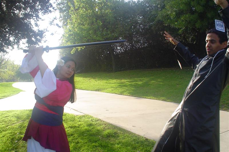 Fake Con occurred in a park in La Mirada on March 10, 2007. It was to celebrate Matt Matt's 22nd birthday. Likewise, Stan took me to the La Mirada event. (Thanks for the ride again!) I cosplayed as Mulan because I need more pictures of myself as my favorite Disney character. After getting lost a few times, we managed to find our way to the park. We thought we were running late, but others had not showed up by then. Fake Con was a very photo driven con. There were many costume changes, but I only had one. Yet, it gave me the advantage of taking tons of great cosplay pictures. I shall let the photos speak for themselves. Pictures are copyright by Victoria Erica. If I took your picture, feel free to use it on your site or cosplay gallery. If you want me to remove something, kindly email me. While you're here, do sign the guestbook. This site was brought to you by the font Muriel. |