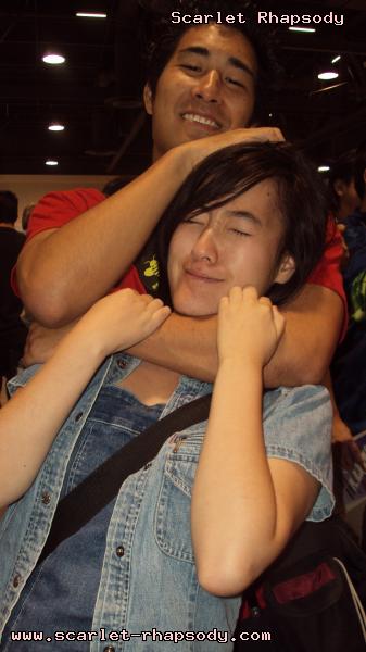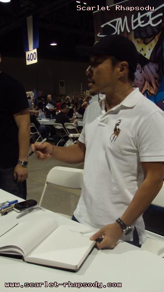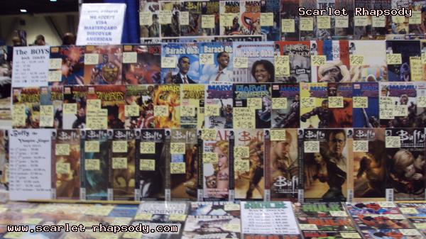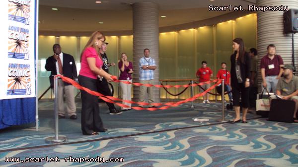 Once the ribbon was cut, the attendees rushed into the dealer's hall as if it was Black Friday. We were surprised to see World of Nintendo having their own set up. Miguel, Stan, Deb, and I tested out Legend of Zelda: Spirit Tracks. The dealer's hall consisted of a variety of merchindise any fanboy can appreciate - figures, comics, DVDs, etc. In addition, there was a row of celebrities doing signings. Reportedly, George Lazenby (On Her Majesty's Secret Service) and Anthony Michael Hall (Sixteen Candles, The Breakfast Club) were supposed to show up, but I was dissapointed that I did not get to see them. Who says that dealer's room products only appeal to fanboys? Deb delves into childhood nostalgia by cuddling with a Stay Puff Marshmallow made famous from (The Real) Ghostbusters. One of Stan's favorite aspects of Long Beach Comic Con was the wrestling ring. Though I am not into wrestling, it added a certain uniqueness to the dealer's hall. Extra entertainment for those of us lazy to attend a panel. I was fortunate to meet Ms. Limelight and Hygena from Stan Lee's Who Wants to be a Superhero (season 2). After chit chatting with Hygena, she talked about her concept for her character for the series. Once upon a time, at Comic Con International, she was disgusted by the fanboy stench. Hygena thought it was time for an intervention made of Fabreeze and soap galore. Thus, Hygena was born. I also mentioned to Hygena about my boyfriend who has a thing for maids. She suggested that he should stop by and that I should wear my maid outfit. Stan and Miguel waited for about an hour to get a sketch from Jim Lee (Superman: For Tomorrow). While the boys were waiting, they were watching Kamen Rider on Stan's lap top. Deb and I were looking at DVDs from child hood past. I will admit, the Sailor Moon boxset looked rather tempting, but instinct told me to hold off on it. Later that weekend, I discovered that they were pirated dvds. Stan finally got his autograph and sketch from Jim Lee after waiting in line. It was almost like lining up for Space Mountain. Deb and I also chit chatted with the Peanuts voice cast. We met the actors for Sally, Charlie Brown, and Lucy. We also picked up some insight if one wants to break into the voice acting business. Workshops and getting used to matching mouth movement is imperative for success in voice acting. The cast of the famed comic strip hopes that the Peanuts gang will make a come back once audiences become a little bit more conservative. We found very few costumers at Long Beach Comic Con. Most of them were of the comic book variety, but we spotted one Ash Ketchum. There were plenty of toddlers dressed up as their parent's favorite superheroes and superheroines. The con began to wind down at 6:30PM. We had seen all we were interested in the dealer's hall. I mentally bookmarked a few things that Jared would be interested in just for courtesy's sake. Becky met up with us later in the day for dinner and Long Beach nightlife. The upside of Long Beach is that there is plenty to do outside of the convention center. The Pike had many restaurants and attractions.Miguel, Deb, Stan, and I were just watching the sunset from the pier overlooking Shoreline Village. I do not know how many conventions have this opportunity - to check out the sunset, but all the more reason why Long Beach is a rather scenic place. We went to Borders to hang out and to poke fun at manga. I was much more enamored with Pride, Prejudice, and Zombies. Becky knew of a place that had awesome ribs. Stan and Deb were more in the mood for Dr. No's Secret Island Headquarters, but we decided to keep an open mind and hit an eatery known as Famous Daves. After ordering the family platter, we were stuffed. Even when I woke up the next morning, I thought about having leftovers for lunch, but I was still stuffed. Many thanks to Miguel and Becky for this new discovery. Pictures are copyright by Scarlet Rhapsody. If I took your picture, feel free to use it on your site or cosplay gallery. While you're here, do sign the guestbook. This site was brought to you by the font Mufferaw. Many thanks to Chaz Boston Baden for the image resizing and watermarking program. |