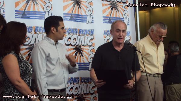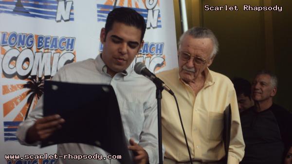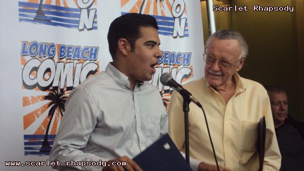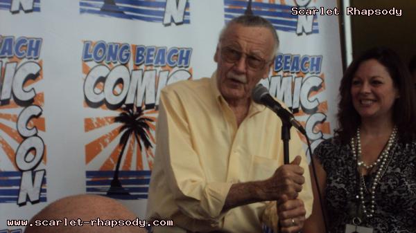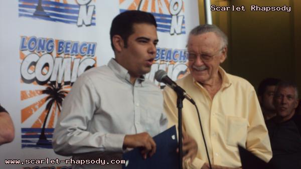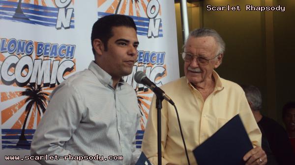 | I arrived earlier than planned in downtown Long Beach straight from work. It was nice, but blustery. I knew Stan and Deb would be showing up later in the day. Opening ceremonies would not happen until 3:00PM. It was 2:00PM, and I decided to take a walk down memory lane over at the Long Beach Hyatt, home of many a cosplay gathering during the Anime Expo Long Beach series. It was close to 2:30PM and I decided to get a good spot for opening ceremonies. I was not anticipating for Stan and Deb to show up until much later in the day. Getting my press badge was easy. There was not much of a line for registration either. Friday was rather lite compared to usual numbers typically seen at Comic Con International. There were a few costumed caped comic characters. The ones that recieved the most attention were this Poison Ivy and Harley Quinn from Batman. As the 3:00PM hour drew closer, more and more Stan Lee fans gathered close to the ribbon that Stan Lee would cut to officially open Long Beach Comic Con. I recieved a call from Stan and Deb. They were in the area. Luckily, I had a good view to see this psuedo-historic occasion. Stan "The Man" Lee appeared in front of many press photographers and fans. When he arrived, he was greeted by a chorus of "Excelsior"s. Before we could get to officially opening the con, the City of Los Angeles and the City of Long Beach honored October 2, 2009 as Stan Lee Day. Take a look at opening ceremonies as filmed by Stan Oh.
