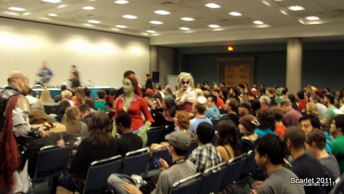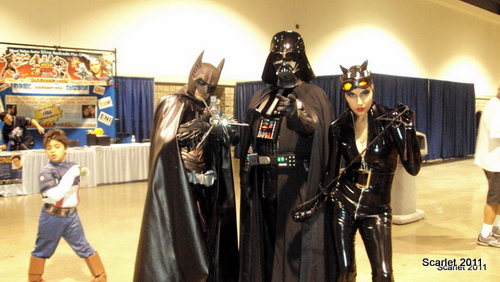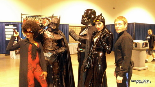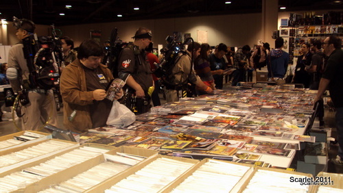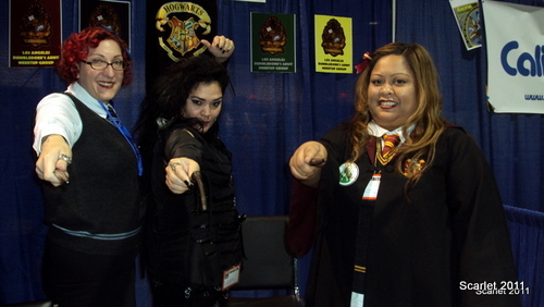 The team woke up bright and early on a typical autumn Saturday morning. As team leader, I still had no idea what I was going to wear to the event as most of the crew was going to be in Western media themed cosplays. When Becky (Applejack) and her husband arrived, I decided to wear my Rarity from My Little Pony: Friendship is Magic. After having a light lunch from Carls Jr., the team crossed the Vincent Thomas bridge into downtown Long Beach. We arrived at the convention premises around noon. Registration was simple and easy. No long lines and no hassle. Most of the action occurred in the exhibit hall on the basement floor of the Long Beach Convention Center. The exhibit hall consisted of comic book publishers showcasing the latest releases, comic book vendors selling trade paperbacks and single issues from the golden age, miscellaneous toy dealers, and independent artists from print to multimedia. Becky and I went around the dealer's hall. Becky's favorite part about Long Beach Comic Con is that you will never leave empty handed. First, we visisted the 501st, a Star Wars costuming group. They were taking donations to raise money for charity to support health care costs for a newborn who was born with health complications. A donation can get you an autograph from a cast member from the original A Team. Becky also stopped by the Long Beach Library's booth where they were giving away free books. Luis Vargas, a librarian, was also taking photos of various costumers. Becky took home a signed children's book for her niece. There were a few interesting displays in the dealer's room. Starburns Industries had dioramas of their latest show that will be on Adult Swim soon. We also learned that Tokyo Pop, the former manga publishing company, is somewhat still alive through Get Geeked. There were plenty of comic book themed cosplayers at this event. The most popular costumes came from Batman, Captain America, and Spiderman. There were a handful of anime cosplayers at this event, but it seemed that cosplayers from mainstream media received more attention. Attendees were happy to take pictures with their favorite superhero. It was like meeting Mickey Mouse for the first time at Disneyland. In the afternoon, we went to the Robot Chicken panel hosted by Seth Green. The panel room was filled to the brim to where attendees were standing against the walls. Seth Green and his creative team revealed upcoming release for the Robot Chicken franchise by playing a season five teaser and a promotional for “RC/DC,” a special that will feature DC characters caught up in the typical Robot Chicken shenanigans. Seth Green opened up the floor to Q&A. Suffice to say, there was not much else in terms of programming during the day. While there were horror movies screened throughout the day, none really caught our attention. The next best events would happen later in the evening; the zombie walk and the masquerade ball. The crew decided to watch some Persona 4, an anime based on a Japanese RPG (perfect for a comic convention?) for their afternoon siesta. Though I do enjoy my fill of Japanese anime, I decided to check out the food trucks outside the convention center. I like how major events are inviting food trucks to come by and provide a variety of food choices at a reasonable price. $10 convention hot dogs get boring and bland after a weekend. This year, Long Beach Comic Con had Sprinkles Cupcakes, Jones Soda, a lobster truck, and an Indian food truck. Unfortunately, they were only around until 5PM. The exhibit hall remained opened until 7PM. The team decided to peruse through the dealer’s hall and check out what else was available. By the later afternoon, the dealer’s hall was pretty clear to explore. Stan and Deb decided to watch the wrestling match on the showroom floor. Stan mentioned that the wrestling arena is one of Long Beach Comic Con's highlights. He was even asked to give out his fake money to serve as props for one match. I perused through Prism Comics, an organization dedicated to LGBTQ comics. While I am more familiar with the Yaoi genre, I found it interesting to see that there was a comic publisher dedicated to promoting LBGTQ themed comics and artists. Unlike Yaoi, this group is all about advocacy of this underrepresented group and has a variety of publications without gender politics or prescribed gender roles. The group is also promoting Bent Con in Los Angeles. If anyone is a fan of LBGTQ advocacy and meeting like minded people, they are looking for volunteers this December. Typically, I like to visit the artist alley to get a sketch of myself in whatever I am wearing. I met the girls from Purple Top Hat whom I have commissioned to do a sketch of myself in my Rarity cosplay. The sketch will be ready by Comikaze. I also bough the first issue of the diesel punk comic, The 19XX. Even Becky was sold on some of the artwork that she bough a Rocketeer print to frame at home. Speaking of mid 20th century artwork, Mid Century Planet, had plenty of paintings and prints on display. This group is inspired by movies like Breakfast at Tiffany's. Other highlights included getting to know Rebel Legion a little bit better. They had a great sourcebook for Star Wars costuming. There was also a Harry Potter costuming group, Dumbledore's Army. It seems like there are several different fan groups dedicated to dressing up as characters from popular media and meeting up for social gatherings. The night was winding down and the dealer's hall was closing up shop at 7PM. It was nice that there was a variety of things to do and check out. By this time, we were too tired and hungry to stay around for the masquerade ball. It would have been nice if it was held around 5PM. However, as we were leaving the convention center to grab dinner at Islands. Even while waiting outside for our table to be ready, it was still an eerie site seeing thousands of zombies take over the convention center. Pictures are copyright by Scarlet Rh
