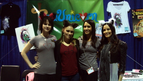 We arrived early at the Long Beach Convention Center in order to regroup and prepare for the day. When the doors opened we began our exploration of the dealer hall. This year it seemed like there were many more single issue venders and far fewer hardcover/Trade paperback venders. However, it was nice to see so many booths offering candy as Halloween was the next day. As we explored the hall we came across the beautiful ladies of the Team Unicorn booth. Victoria talked costuming with them, while Jared got distracted by candy.