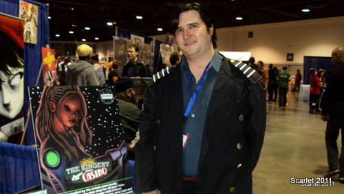 As we walked through the hall we ran into Kurt Miller (The Wasteland) and discussed the screenwriter's current projects. It was nice to discuss the troubles of dealing with whimsical artists and the difficulty of getting an independent comic completed. We parted ways and found ourselves at the Pendant Audio booth. Both Jared and Victoria have performed for Pendant in the past and meeting the Pendant staff in person was a treat. Pendant was promoting the anniversary of The Kingery and the recent completion of Dixie. We also got to meet fellow voice actor and vocal coach, Mark Allen Junior.