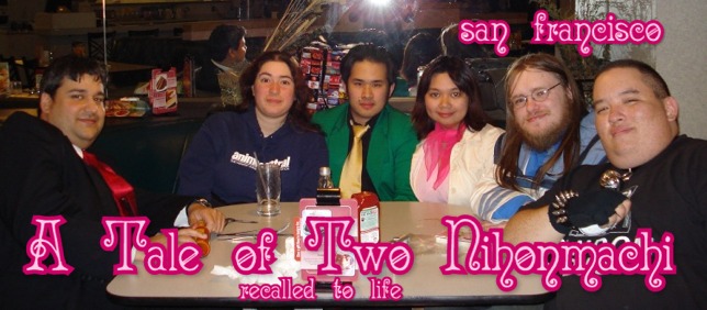 Once upon a time, a boy named Bart wanted to hold the first Northern California Spring Gathering at Treasure Island. The island, owned by the US Navy, provided a picnic area and a scenic view of downtown San Francisco. Unfortunately, the idea was shot down days before the picnic could take place. The US Navy never recieved Bart's permit request. Fortunately, days later, San Francisco Mayor Gavin Newsom offered to pay for the RSVP permit fees. The picnic is still happening, but at a later date. But what did the cosplayers who had intended to go do that weekend? Once the news broke on cosplay.com and livejournal, the cosplayers decided to have an impromptu last minute gathering in Japan Town. I flew in for this event. Luckily, my flight was free. Yet, it did give me an oppurtunity to hang out with friends I don't get to see often. Mind you, at this point, I had not visited the Bay Area since October 2007. It was great to set foot in Japan Town once again. Tom, Claudine, and I first went fabric shopping in the Mission District. Then we went to downtown San Francisco to shop at the Virgin Megastore. Finally, we took a bus that took us straight to Japan Town. Japan Town also had an event going on - The San Francisco International Asian American Film Festival. I had worked publicity for this event last year. I was thrilled that the event was showing Lupin III: Castle of Cagliostro later that evening in the peace plaza. Not to mention, Tom and I were cosplaying Lupin III. For the most part, it was wandering through Japan Town with a few friends of our's - Mike, Dominic, and Patrick. We sat and shared convention horror stories. As far as cosplayers, there was not much going on. It didn't seem much like a gathering, but just clumps of ninjas (Naruto was the main staple) doing their own thing. Yet, it was still nice to see friends again. And go Omnomnom on the food at Japan Town. We had lunch at On the Bridge, desert at Sophie's Crepes, and for dinner, because we were so Japan-ed out, milkshakes at Denny's. To conclude the evening, we watched Lupin III: Castle of Cagliostro out in the Peace Plaza. Tom and I had our pictures taken by the marketing director of the film festival. It felt surreal because we knew this was not a convention. Yet, Japan Town had quite a few cosplayers and now, we were watching a classic animated movie. It felt surreal like Japan Town Anime Faire (JTAF) was happening again. Pictures are copyright by Traveling Valentine. If I took your picture, feel free to use it on your site or cosplay gallery. While you're here, do sign the guestbook. This site was brought to you by the font Acadian. |