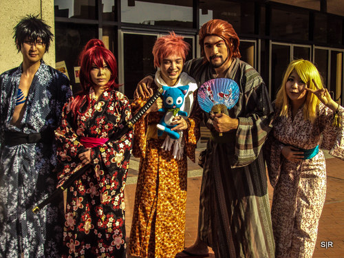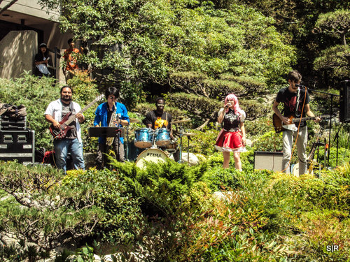 One of the highlights of this con was the concerts in the Japanese garden. While Little Tokyo is the place to go for cosplay meet ups, it's very rare that the Japanese garden is available to the public. We caught two concert sets in the garden - Cherry Bomb and On Being Human. Cherry Bomb covered j-pop and anime songs in their set list. I was rather happy when they started covering AKB48 songs. While there were few people on the Japanese garden level, casual observers were able to check out these bands on the public observation deck. Cherry Bomb also had a saxaphone player - something I don't really see in amateur cover bands at anime cons! On Being Human covered video game music - their cover from the Goldeneye score caught our attention!
