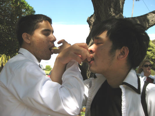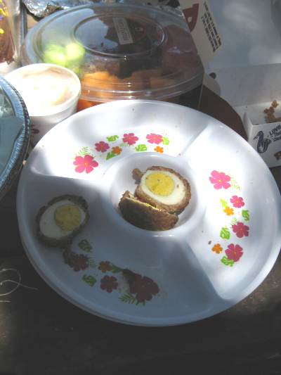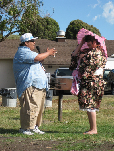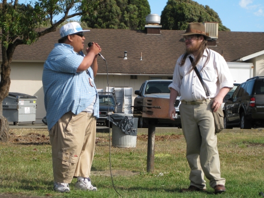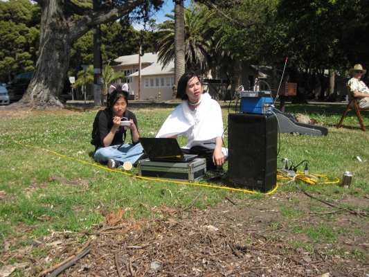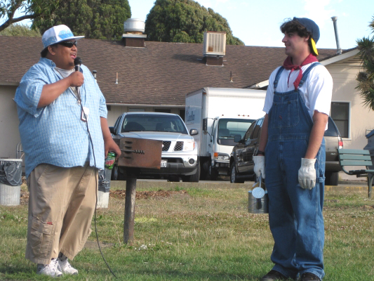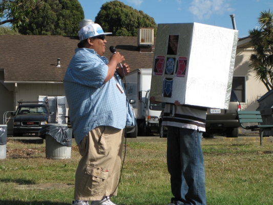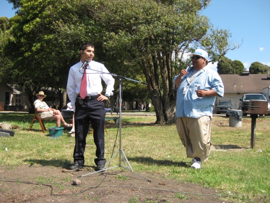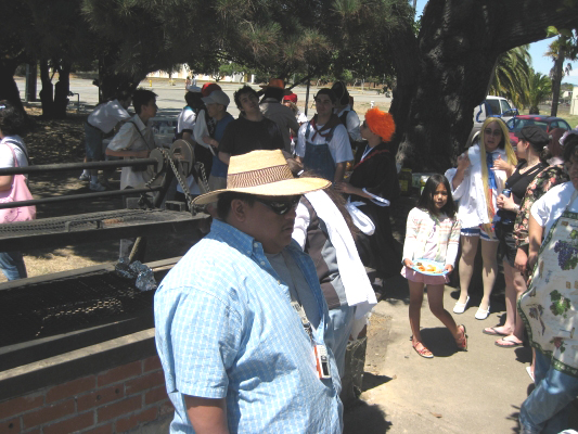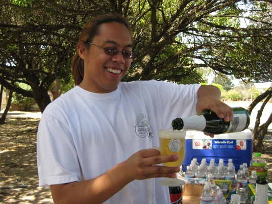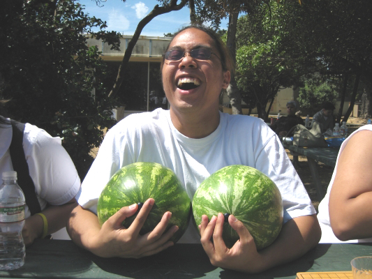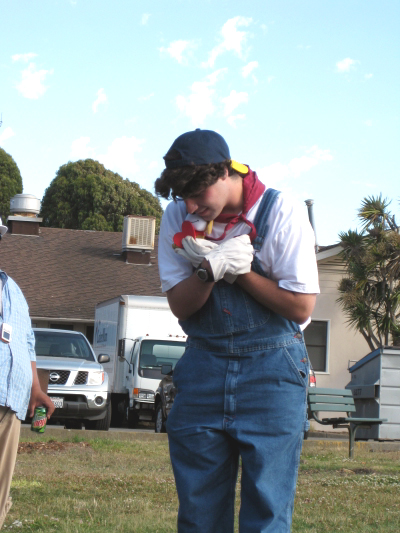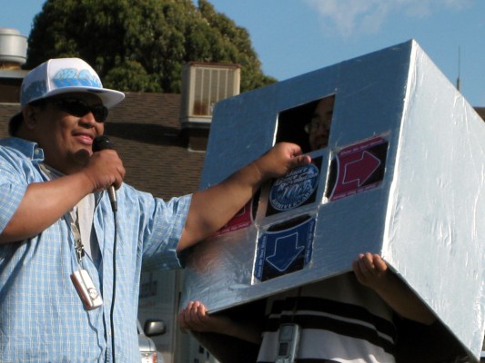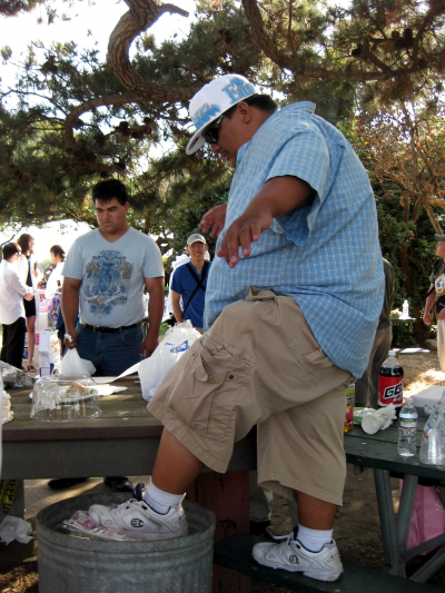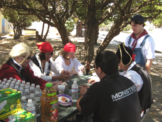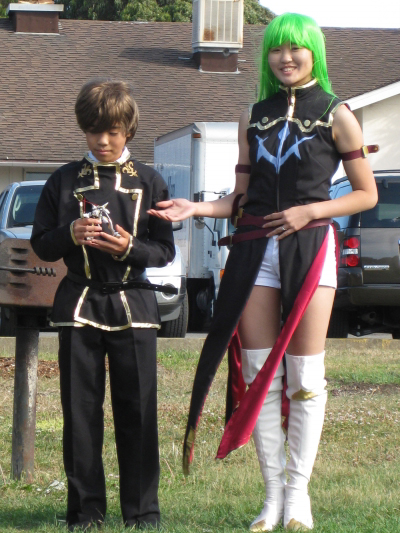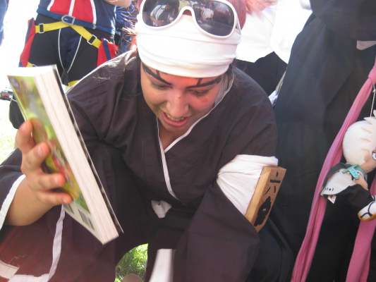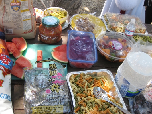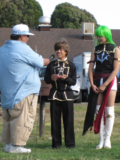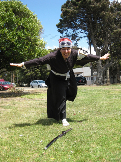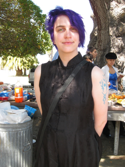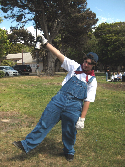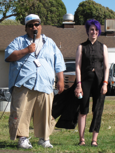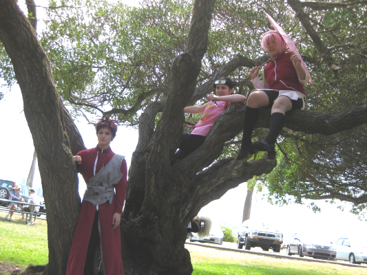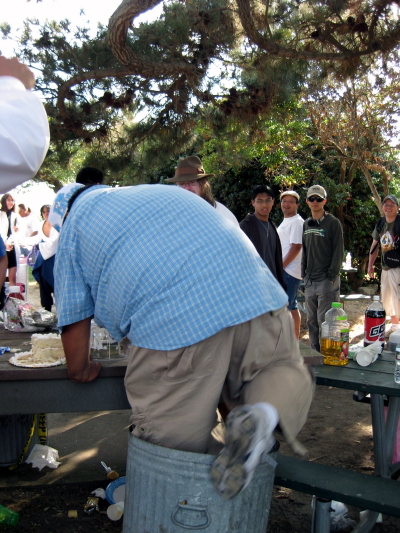 When fellow Bay Area cosplayer and press BART Boy announced his plans for a Nor-Cal Cosplay Picnic in March at Treasure Island, many looked forward to it. This was one of the first events of such caliber in Nor-Cal. The So-Cal Cosplay Picnics went so well over the few years. How would the Nor-Cal equivalent prevail? Then March rolled in. And so did bureaucratic red tape that canceled the picnic on its scheduled day. This was definitely not the first impression any event desired. But like a child who is thrown off his/her bike, BART Boy and the organizers brushed the dirt off their shins, cursed a little, and got back on their figurative bikes to bring the Nor-Cal Picnic in June. June 21, 2008 I woke up to my 9AM alarm promptly at 11AM. Cursing my late awakening, I scrambled for the quickest and most civilian-friendly costume best suited for the weather. Lupin? No time to style the hair. Sosuke Sagara? Quick, but guns are not civilian-friendly. Borat in his green swimsuit thong? Tempting but no. I reached in my closet and located the Yuki/Kyo summer uniform that Hitori made me years ago. I put it on and quickly noticed that my arms were getting too thick for the sleeves. Remind me to thank my now-expired gym membership and years of heavy lifting at my old job. To keep my pack light and avoid the risk of damage, I left the bracelet and cat ears behind. Due to increased gas prices and in observance of the minimum legal drinking age, I also left behind a case of seasonal product that my current job sells. If you're a baseball player who needs his bat, you ask for a bat boy. If you want to hear allegations of sexual misconduct by a priest, you ask an altar boy. If you want to find your way around the public transit in San Francisco, you ask BART Boy. Through foresight, BART Boy provided not only detailed driving directions to the Treasure Island picnic site, he provided detailed instructions for taking BART and MUNI to the Treasure Island picnic site. As frosting on the cake, he provided photos of landmarks and transit signs. Considering how all street signs and buses look the same, this was a great help. After a quick ride on BART (with an electrical problem delaying the train), I ran to the transit station and found a waiting Treasure Island bus. Though I only set foot on the corner of the island holding the picnic, I really liked the view of the mainland across the water and the bridge connecting the two. Upon departing the bus, I ran towards the picnic location. Some guy I passed by took one look at me and said, “Hey, I think your friends are that way. There's a bunch of people in costume.” I guess the “Fruits Basket” summer uniform is distinguishing enough to be spotted as a costume. Mr. Wendell the MC welcomed everyone and introduced BART Boy when he finally arrived after 2PM. I arrived at 1PM and found the picnic in swing. Cosplayers were chatting away with fellow cosplayers. A watermelon lay smashed; presumably by a bat. Manning one of the grills was Raider 3. You can't have a picnic potluck without a spread of food and drinks. Food was plentiful. Drinks were cold. One potluck item that I really enjoyed was Patrick's scotch eggs. Scotch eggs are hard boiled eggs wrapped in sausage, breaded, and deep fried. A handmade scotch egg counters the stereotype that British food sucks. I ate about three of them before growing concerned of cholesterol poisoning. Then I ate two more. I'll admit that the dozens of people who turned out for the Nor-Cal Cosplay Picnic was not as high as the hundreds who turned out for the So-Cal Cosplay Picnic. But in this case, less is more. It's akin to the issue of class sizes in university. Sure, having more seats in a class means being able to teach more students with the same professor. But good luck trying to get some quality time with that professor during office hours. With a smaller setting, I was able to spend better time with fellow attendees. Patrick noted it best when he observed that we were able to talk more during the first hour of the picnic than the entire Fanime weekend. So what can one do at a cosplay picnic located on Treasure Island? Well, it depends on what you feel like. If you're a pirate or have the skills of one, play Liar's Dice. Rico brought out the Go board. Pikmin Link was holding photoshoots by the shore for those interested. For those inclined, talking among friends and catching up on events was an option. Then there was the foolproof way to entertain yourself and others by acting the fool. I made my rounds meeting OniCourseMusha, Ryuhayabusadoa2, and the rest of Team Misaki. I then met Janelle, a new face I haven't recalled seeing at a con. Oh, well, these events make it a heck of a lot easier to meet and hopefully remember new people. And if it turns out that I got the name wrong, whoops. There's always the next con. As usual, the costumes were always a sight to see. The cool sea breeze began to gave way to heat. But the weather was still tolerable. Compared to the high heat in other parts of the Bay Area, today couldn't have been better. Once Old Man Mike arrived and set up a sound system and microphone, Wendell and BART Boy were able to grab our attention. BART Boy announced a treasure hunt game. Appropriate, considering that we were on Treasure Island. We divided into teams of four. Of note were Pirate team and Bleach team. After some very unconvincing alteration and augmentation, I fit in with Girl team with Janelle, Ten, and Panda. BART Boy provided clues numerically, regionally, and agriculturally. Naturally, I knew the answers to the clues but no clue putting them together. After heading off in the general direction and deviating, Pirate team began running back with the treasure. But odd controversies and misinterpretation of the rules (Of course, pirates WOULD screw up the rules), resulted in a rematch that resulted in Bleach team winning. Congratulations. Now for the group photo. Thank to BART Boy for wielding my 