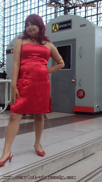 Though it was really tough to get a hold of her at the end of the panel, we took a shot with Veronica Taylor, the Ash we know and love from childhood. We also met a few aspiring voice actors at the panel - Crystal and Joshua. It was really interesting meeting them because they knew about the FLAVA days. For those of you who do not know, FLAVA was an old voice acting forum from the early 2000s that I used to frequent before moving to the Bay Area. Julia was kind enough to take photos of our Phantom Quest Corps cosplay. The setting of Jacob Javits seemed cosmopolitan enough for this ghost busting anime set in urban Tokyo. We relied on Julia's keen eye for getting the right angles and right framing. Thanks a bunch, Julia! Of course, cosplay photographers are allowed to have fun on the set. In between shots, Julia took some MySpace style photos of herself. Everyone was getting ready for the big cosplay show later that night - Yume Cosplay Cup. The grand prize would be an all expense paid trip to Japan and $1,000 to the winning cosplay duo. Much like the Anime Music Video contest, the show would run into the late evening and therfore, missing our shuttle. Again, the last shuttle out is at 8:00PM. Julia could not stay too long either because she wanted to get home before dark. We parted ways with the new friends we met. It was nice to spend a day with one of our California friends who is now a New Yorker. It was also nice to talk to fellow aspiring voice actors and getting a feel of what the market is like in the Big Apple. Jared and I boarded our shuttle at around 5:30PM. We had tickets to the new West Side Story playing at The Palace theater. I changed out of Ayaka Kisaragi. Besides, I heard that we were in for a chance of rain later that evening. So, I bundled up into something warm. On our way to the 42nd Street station, we ran into a few cosplayers at Penn Station. Looks like a few of the kids were starting to head home before 8:00PM. West Side Story was amazing. Jared came in with low expecations, not knowing what to make of integrating Spanish into the songs by the Sharks side, but the inclusion made the story much more believeable and realistic. The choreography was very top notch as well. Though we had understudies for Maria and Anita, they were absolutely amazing. Though I have seen the movie many times before (and done costuming for San Francisco State's production and sang Maria's part in a Sonoma State Broadway revue), this production really brought tears in my eyes. By the time we got out of the show, it was raining. We were also hungry for dinner. Thankfully, the restaurants in Times Square are still open after 11:00PM. We went to the Hard Rock Cafe museum. Then we went to Applebees for some dinner. For whatever reason, the radio at Applebees must be synced to our minds because song after song represented our feelings towards each other very nicely. Pictures are copyright by Scarlet Rhapsody . If I took your picture, feel free to use it on your site or cosplay gallery. While you're here, do sign the guestbook. This site was brought to you by the font Milton Burlesque. Many thanks to Chaz Boston Baden for the image resizing and watermarking program. |