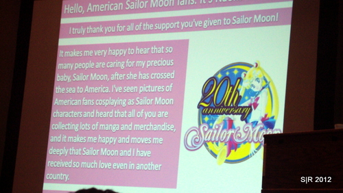 Kodansha USA It was no surprise that you would see the same crowd from the Rose of Versailles panel flock to the Kodansha USA panel. Kodansha USA is responsible for bring the Sailor Moon manga back to life here in the United States. There were rows and rows of Sailor Moon fans wearing t-shirts and cosplays. You really felt the love here for Sailor Moon, even right before the panel started. Likewise, the panel started off with Sailor Moon announcements. The crowd was getting really pumped. There were even a few fans asking if Terri Hawkes was going to show up or if Naoko Takeuchi will make it to an anime convention anytime soon. The crowd had to be silenced right away once they were chanting “Terri Hawkes, Terri Hawkes…” Kodansha USA displayed the Sailor Moon manga box set to be released later this year. The new box set is going to have a sticker set and the first six volumes. Fans asked if they could just purchase the box and the stickers without the books. The Kodansha rep mentioned that the books would need to be reprinted and when they are, the books tend to be slightly larger or smaller (by a centimeter) when they get reprinted. Fans also asked if typos and errors would be fixed up in the reprint. We also got a special message from Naoko Takeuchi: