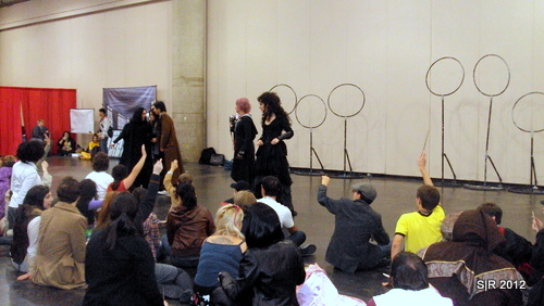 I got into Fables almost a year ago, so I may not be as versed as a lot of the fans are. I was surprised this drew a huge 20 to 30 something male audience. I have never met anyone else who was interested in Fables (though I have got several of my cosplay friends curious), so it was really interesting to get a glimpse of the Fables fandom for the first time. The panel consisted of Bill Willingham and a few of his Vertigo staff members on the renowned fairy tale series. The panel consisted of a semi-spoiler free discussion of the latest issue and what is to come for the Fables universe. Willingham also introduced a new writer aboard the team. The new writer expressed that Fables did not have a strong female character. The fangirl next to me agreed. I was quite surprised and annoyed at the same time. In short, a female does not have to wield a weapon to be admirable and role model material. I was surprised no one brought up Snow White (aka Mayor of Fabletown) and Cinderella and Dorothy. Annoyances aside, this was a really fun panel. Bill Willingham announced that Bigby would get his own story called Werewolves of the Heartland. He did not have much to say about it other than Nazi werewolves and that it takes place in the Heartland. He was giving away a copy of this new trade to a fan who can make up the theme song to Werewolves of the Heartland. Pictures are copyright by Scarlet Rhapsody . If I took your picture, feel free to use it on your site or cosplay gallery. While you're here, do sign the guestbook. This site was brought to you by the font Creampuff. Many thanks to Dream Host, Adobe Bridge, MS Photodraw, Picasa, and Dreamweaver for making this site design possible. |