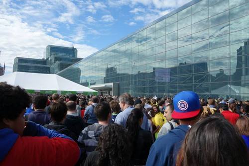 Woke up bright and early for day three of New York Comic Con. Harmony was cosplaying as Sailor Pallas from the Sailor Moon manga. I was cosplaying as Azusa Miura's cute and girly variant. I had gone to Sephora the night before to pick up some makeup to enhance my Azusa cosplay, and the new lip liner worked wonders. We boarded the train to Penn Station and then hitched a cab to Javits. Unlike Anime Expo, panel rooms don't clear out for the next. For the next few panels, while most of them were geared towards a male target demographic, the audience consisted of lady Whovians pining for a stupid sexy John Barrowman. It was quite amusing watching them snipe for front up close and center seats.