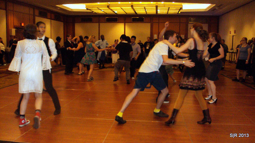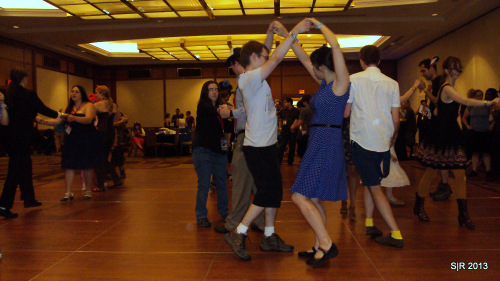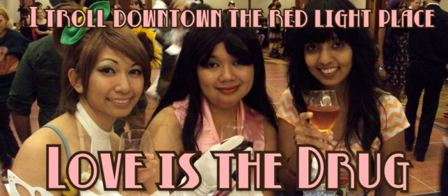 This almost feels like déjà vu. Otakon's Lounge 21 consisted of adult drinks and (east coast) swing. It's as if a ballroom dance had merged with a bar. Lounge 21 was a one night only thing that Otakon wanted to do to celebrate their 20th year. The bar was located at the Hyatt. I thought it was going to be a long walk from the Days Inn, but despite what Google Maps looks like, all the hotels are fairly close and connected with one another. I spent some time with the Angel Hearts gals where they bought me some wine to celebrate my birthday. This was a pretty nice addition to Otakon; the idea of having a 21+ lounge is spreading across the con circuit. I also liked watching people dance to classic big band and swing tunes from the 1940s. There was nothing formal about it, just come in and grab a drink. Ain't we got fun!