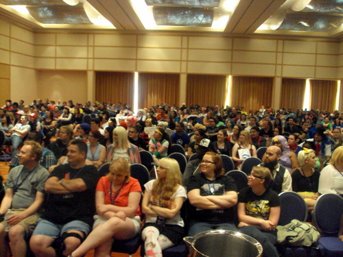 Otakon typically accepts about 150 fan panels from attendees interested in being a part of the programming. Moon Prism Poptarts was accepted. We weren't quite sure what the attendance for a Friday early afternoon would come to. However, we nearly filled up Panels 5 at the Hilton! The panel covered how Sailor Moon became localized in North American in the 90s. A majority of the audience were introduced to Sailor Moon during the Toonami era. A handful of people in the audience were familiar with the strawberry poptarts procott where the title of the panel got it's namesake. We were operating this panel after coming in at 7AM! However, the audience seemed to get a great kick out of it. We wanted to aim for more audience participation. To kill time before the panel started, we asked people in the audience what Sailor Moon meant to them.