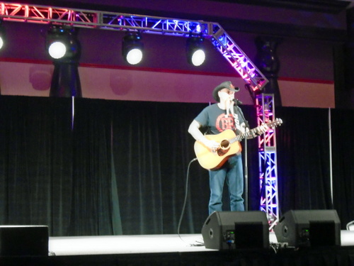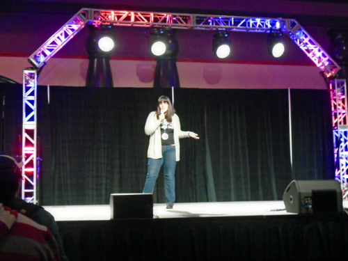 Opening Ceremonies took place in the main events hall. Like most opening ceremonies, the chairs of the event introduced the guests of honor, the mascot, and promoted various events happening throughout the weekend. Though the theme of Otakon Vegas was “detective” it was not played out as much as typical Otakon fare. West coast is not really known for playing up themes. We met Lyra and the plush coyote as the convention mascots. We also were introduced to the various voice actor guests. Vic Mignogna went up to someone in the audience who revealed it was their first time in Las Vegas. Jason Miller played a country ballad of the Pokemon theme. “This is a song about being the very best,” he said as he walked out center stage. With a high five from the vice and main con chair, Otakon Vegas was on.