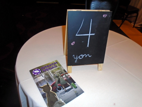 Otakon Vegas, much like Otakon in Baltimore, also has a cosplay photo studio set up in the convention center area. It was a smaller room compared to the Baltimore counterpart. An impromptu photo set up was made available to dressed up attendees. You can have an unlimited amount of photos taken and have them copied to a memory device for $30. Photography was simple; all you had to do was pose in front of a grey draped background. Additionally, you can also pose with various Otakon mascots including crabby and the coyote for Otakon Vegas.