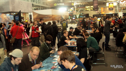 The Exhibit Floor PAX East took up the entire Boston Convention Center. The exhibit hall floor was made of massive displays. It reminded me of the Anime Expo glory days - teetering towers, giveaways at the top of the hour, promotional displays that put you into the world of the game - there was always something going on somewhere. At this point, I felt very overwhelmed and I had no clue where to start. I just browsed around. There were definately a lot of things to look at. However, it took a while to wait to test out new games and watch trailer presentations. I thought about checking out the Assassin's Creed: Black Flag presentation, but it was an hour wait and I could only take so much of the same UBISOFT trailers being looped. I did catch sight of a few booths hosting their own cosplay contests - League of Legends and Twitch - just to name a few. Other than video game companies showing off upcoming products, the show floor also had PC gaming products from headsets to video cards. As someone who wants to upgrade to a video editing and gaming desktop, I was much more intrigued by these displays. One particular booth had a contest on who can build the fastest desktop. If anyone was taking commissions for onsite desktop customization, I would have placed a down payment right then and there. You certainly had a lot of the best of the best tech to enhance PC gaming. For the most part, eccentricly dressed pepole were recieved well at PAX East.