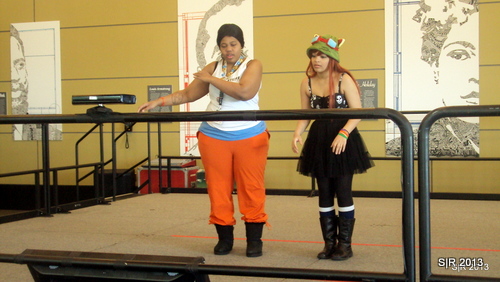 Dance Central: Main Stage At PAX East, to get swag, one must earn it. Dance Central on the main floor had about a 45 minute wait. However, it was still fun to watch people bust a move. Microsoft had a stage set up where you could either play with a friend or play with their hired Dance Central professional. It was really fun to see all types of people come up to the stage - cosplayers, casuals, gamers both young and old and in between, etc. If you did go up on stage and dance, you would win arm warmers, a gym bag, and a water bottle. It was so worth the wait. I ended up doing "On the Floor" by J.Lo on medium. Let me tell you that it was hard keeping up with the moves when you're wearing gogo boots and wearing thick layered twill. However, it was still fun to show off to J.Lo and to dance like an idol in front of people. I just wish someone could have taken video.