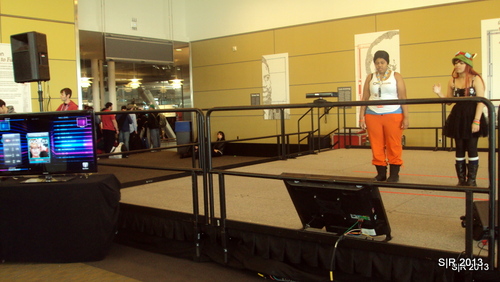 Dance Central: Open Stage It took me a while to find the Dance Central free play area. Once I escaped from the wub wubs of the Mag Fest room, I was able to find the open stage for Dance Central. PAX East had two open halls where you could play Dance Central and Rock Band. Unfortunately, PAX East lost a bid to Rave Rave Revolution in Rhode Island. Had Pax East won the bid, PAX East would have recieved more dance and ryhthm games such as Beat Mania, Para Para Paradise, and Dance Dance Revolution. However, I was a happy idol with Dance Central 3. There was a short line for Dance Central 3, so I decided to do two songs. The first time around, the person next to me in line wanted to do "Firework" by Katy Perry. Suffice to say, it was our first time dancing to "Firework"'s routine. The second time around, I wanted to do "On the Floor," but the control messed up and set it to "Poison." Though I wanted to change it, the crowd wanted me to try "Poison" anyway. It was nice bring back some early 90s funk to PAX East.