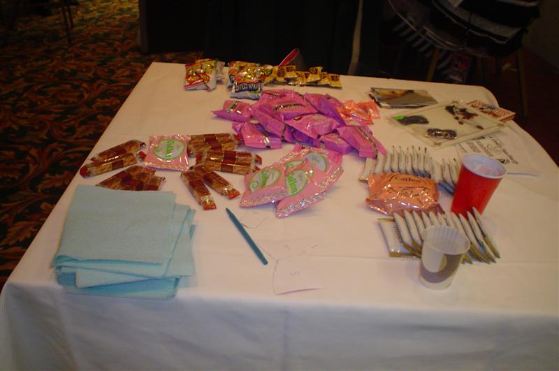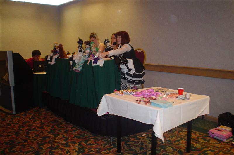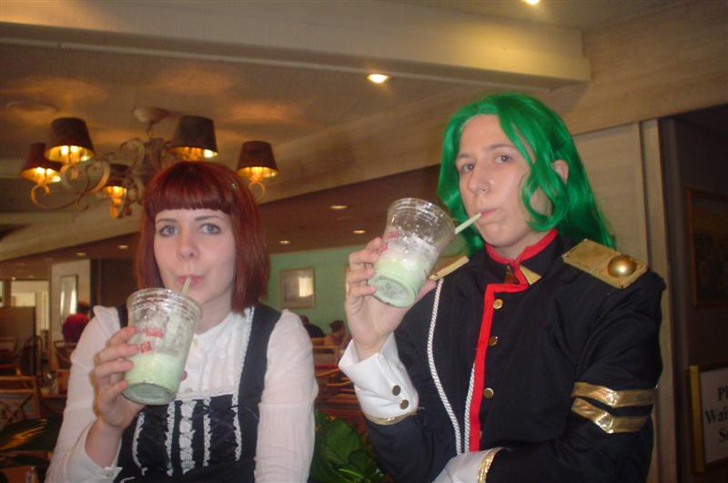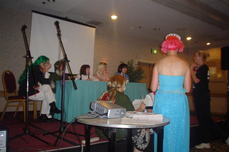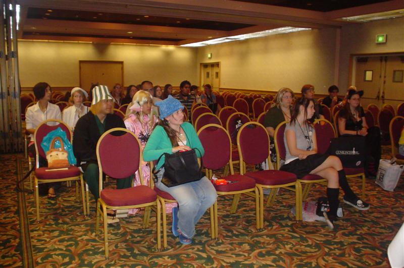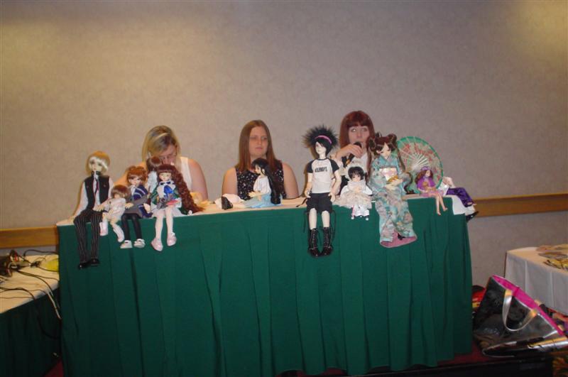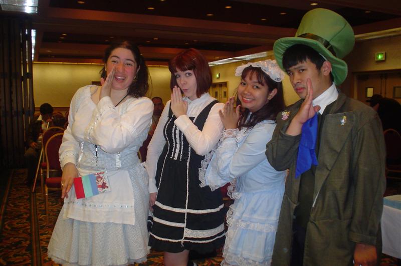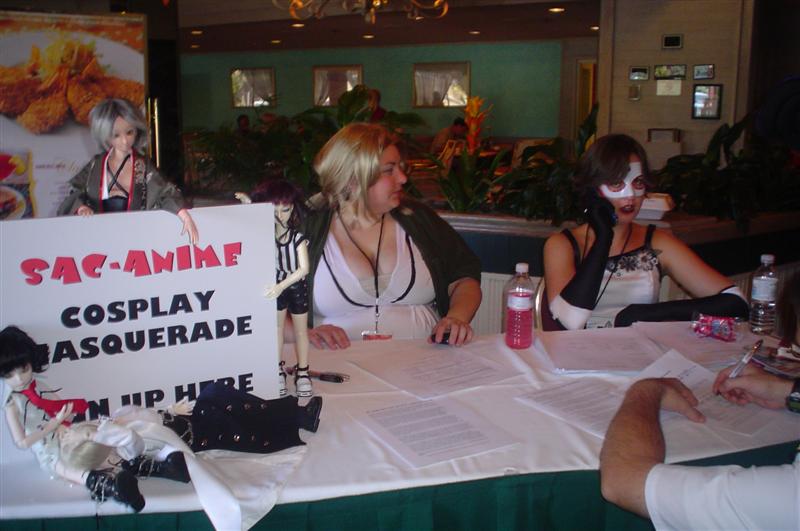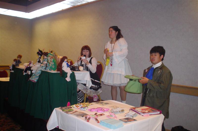 Sue (aka B Sapphire), director of programming, invited Traveling Valentine (and a few of our friends) to host a dollfie event. The original set up was that we were given a two hour timeslot to host "A Doll's Tea Party." It would be a mix of a dollfie panel presentation and a tea party style gathering. The best laid plans of mice and men often go astray. The set up we were left with was a traditional panel set up - chairs facing a table of panelists, and a buffet of snacks and tea. Katie, Astro, and Diana ran the informative panel on Asian ball joint dolls. Tom and Claudine helped out with the raffle and the tea and cake portion of the event. Tom also brought his laptop to show a few "Cosette and Eponine" videos and other pictures from doll events. Claudine also brought a documentary on dolls. Unfortunately, the AV Staffers were not able to give us a full set up to show our media. However, the panel ran smoothly. Astro provided a free suedeing service. There was much to be given away at the raffle. Claudine was able to secure donations from Sac Anime dealers as well as provide many dollfie related swag - skirts and Harry Potter themed scarves. Tom brought in the freebies from the Anime Central panel - postcards, mousepads, etc. Sasu, a mutual friend of our's, also donated socks for the raffle. There were many random prizes to give away! Even if you didn't win anything at the raffle, there were snacks and tea a plenty. Everyone was fighting for the Pocky. Though, I think all of our panelists agree that Coque D'asses trumps them all. (Thanks for suggesting that, Astro!) Overall, the Doll's Tea Party was satisfying. There were points that could have been better, but I'm glad this event ran smoothly. Thanks to our friends who helped us out! Tom and I had to move in our gear to our new hotel room. At the same time, Tom had to check into masquerade to confirm our act. Tom had many weapons to check in, so he wanted to be sure. During this time, I was unpacking and ironing costumes. Once Tom needed me, I quickly changed into Momo Hinamori and went back inside the con. We ended up having lunch at the hotel's restaurant. It was one of the most delicious meals ever. Pictures are copyright by Victoria Erica. If I took your picture, feel free to use it on your site or cosplay gallery. If you want me to remove something, kindly email me. While you're here, do sign the guestbook. This site was brought to you by the font Minnie. |