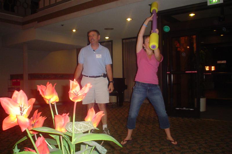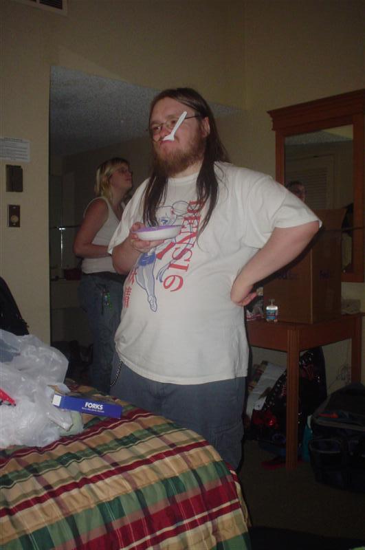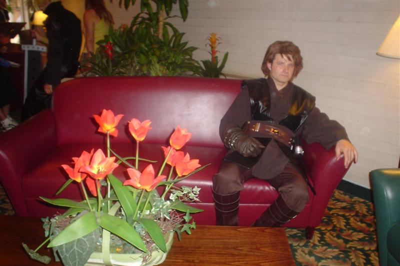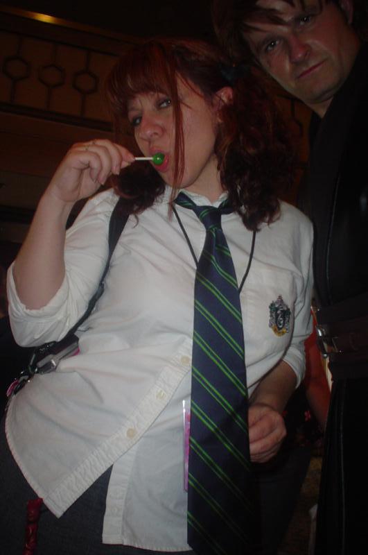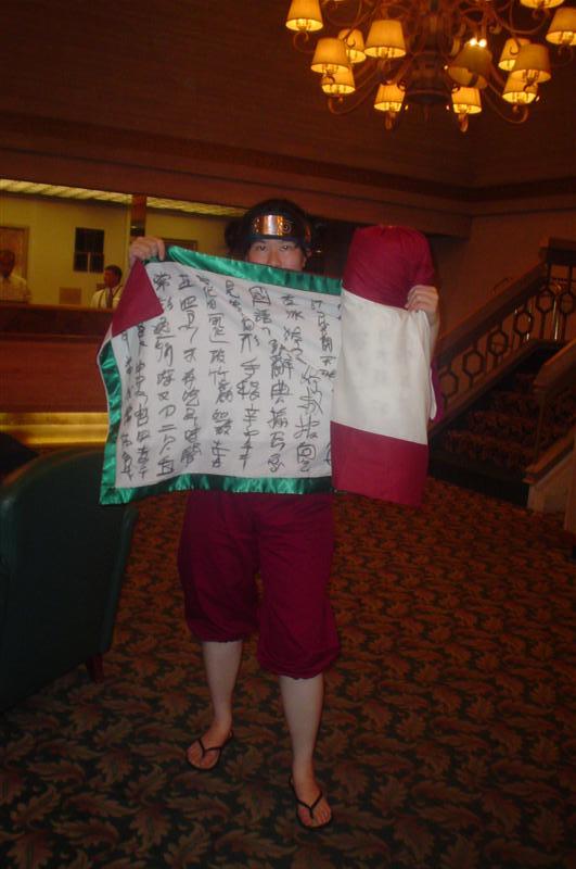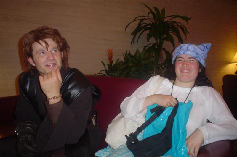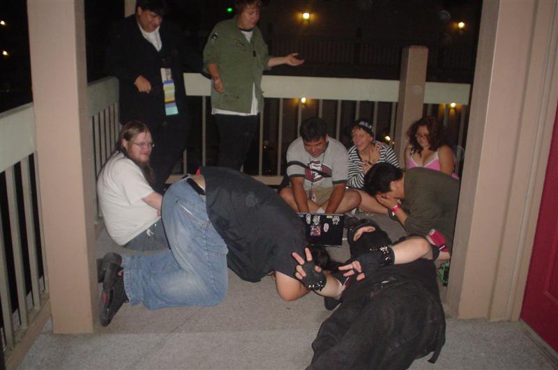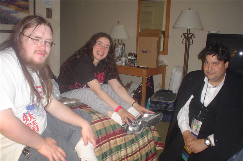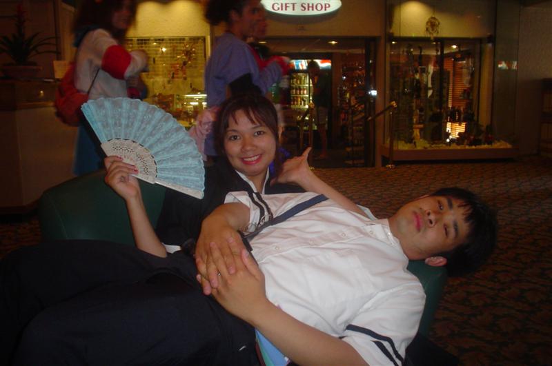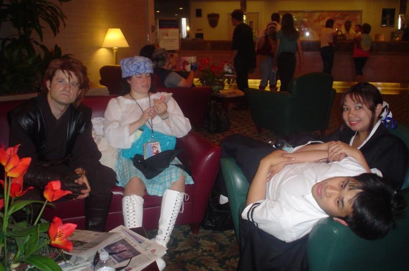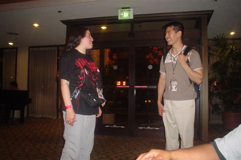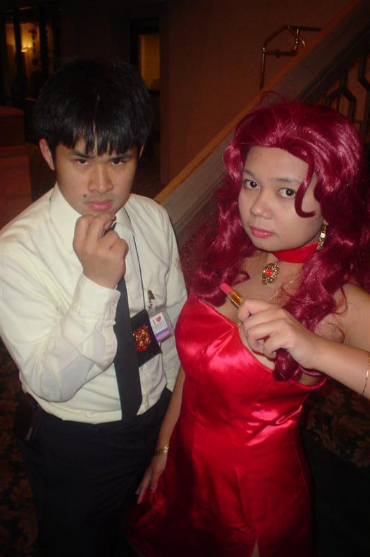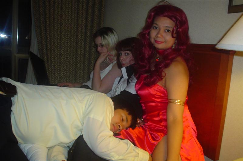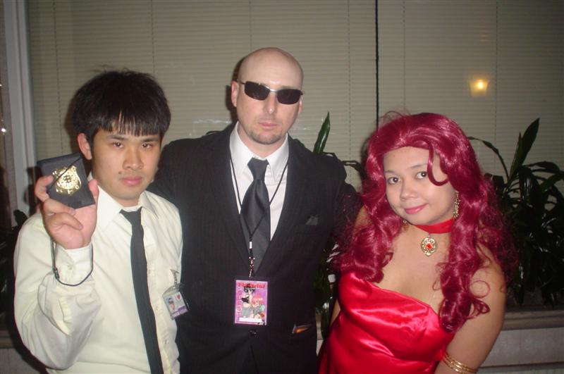 What else was there to do for the rest of Saturday? Tom and I are used to Masquerades on the night before the final day. The only things that were scheduled on Saturday night were Hot Yaoi Nights and the rave. Not our scene. Sac Anime could have made more programming available, or at least schedule the masquerade on Saturday evening. In all honestly, there was not much to do for us con veterans. So, we made the most of our time there. Tom and I had custom badges made by Katie Bair. We judged masquerade alongside Katie Bair last year. I got an "ABJD Lovers International" badge, while Tom got an "I Heart Zombies" badge. We also scoured the Dealers Room. Tom, Claudine, and I killed some time by jumping in the pool. Trust me, after cosplaying in 98 degree weather, you'd want to as well. There was a concert happening close by. Claudine attempted to dance in the pool. We also ran into our other friend, Tony. Once we got out of the pool, it was getting dark. Tom and I changed into our Phantom Quest Corp costumes. Sac Anime was practically empty. Jorge A. Rivera, Tom, and I explored the hotel grounds at night. We were told by this one hotel bar that we weren't welcomed in their area. Great. Finally, we simply chilled in the lobby. A few people that were at a seminar asked us what is our purpose in life. It was quite strange to be asked by mundane people deep, insightful questions. Not to mention, they didn't call us "freaks" or anything negative. They were simply curious about our hobby. Also from the same seminar, there was a couple that wanted to show off their combat and juggling skills. Then there was an ice cream party at Bart Boy's hotel room. Diana and company bought some yummy ice cream to cool down the hot summer night. After discussing much old school anime (Nadia, Gunbuster, etc), Astro popped in clips from Hot Shots. We LOL-ed. Then, Mike, Patrick, and Dom showed us "Read a Book." Anything to amuse us! Finally, Tom and I were getting hungry. We did a midnight run to Denny's. I was so out of it that I nearly fell asleep at the restaurant! And Tom noticed that our server must have fallen asleep also, but his two cents would wake her up once we left. Pictures are copyright by Victoria Erica. If I took your picture, feel free to use it on your site or cosplay gallery. If you want me to remove something, kindly email me. While you're here, do sign the guestbook. This site was brought to you by the font Minnie. |