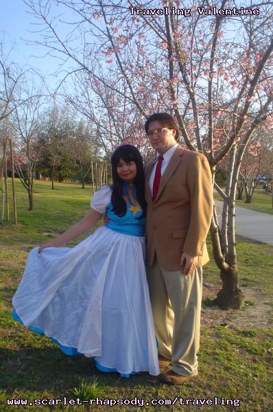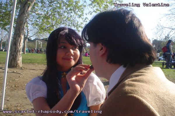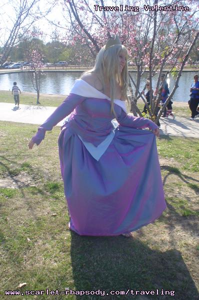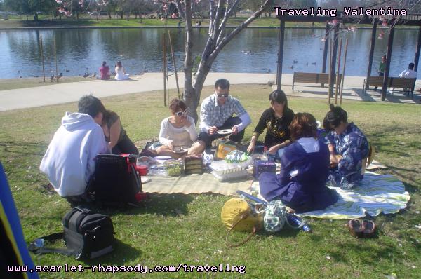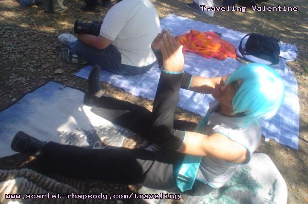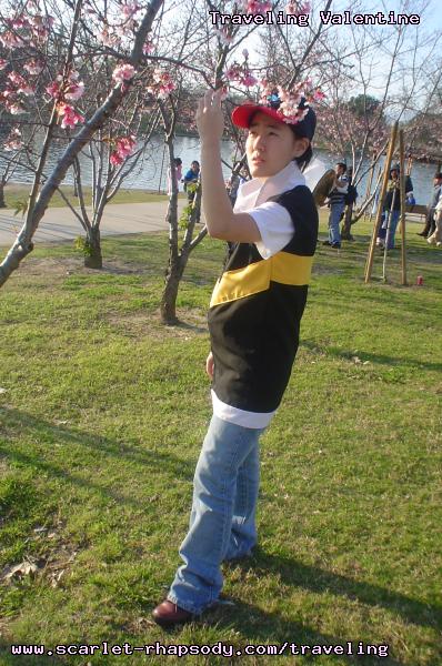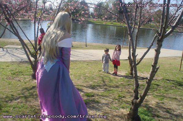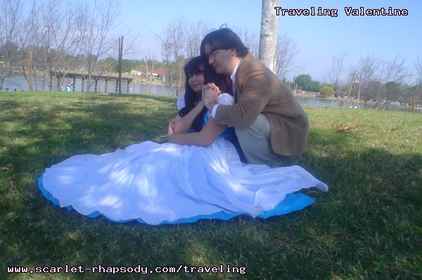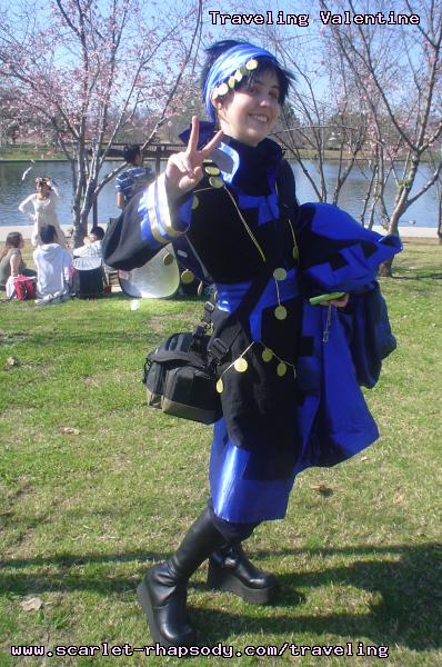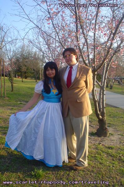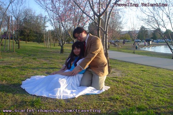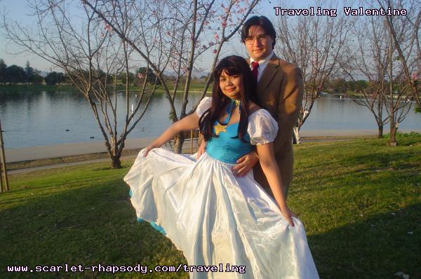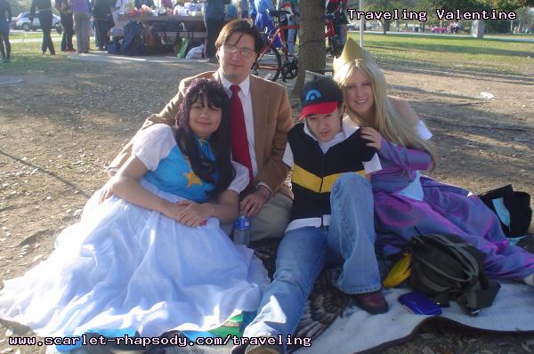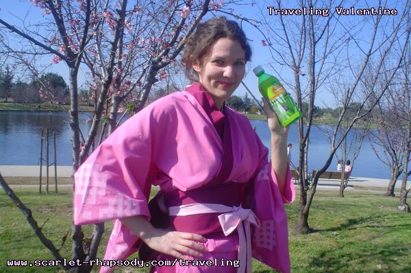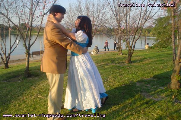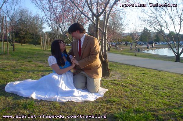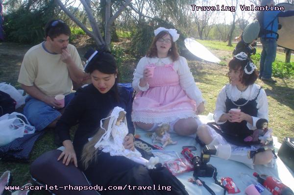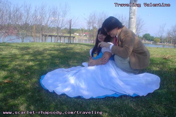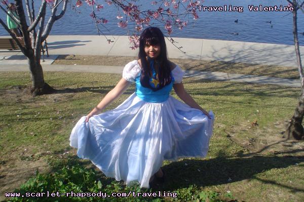 | Curtain up! Light the lights! Nothing to hit but the sunny and decadent San Fernando Valley. Per usual, Stan, the official Traveling Valentine chauffer took the crew up to Sakura Watch at Anthony C. Beilenson Park. The organizers worried that the rain earlier in the week would damage any chance of the bloom. However, we had a slight improvement from the previous week. We hit some traffic on the 405 North, but this is Los Angeles, what else is new? We finally arrived at Lake Balboa at 1PM. Unfortunately, we did not where the designated meeting point was. We parked on the “waterfall side” of the lake. There were no cosplayers in sight. However, Carolyn and I ran into a few little girls who greeted us with a, "Hi Sleeping Beauty and Hi Snow White!" That was cute. We ran into Kenji, who was also looking for everyone else. After sending the usual “Where the hell are you?” phone calls, we found out that everyone was on the other side of the lake on the “playground side.” There was a nice picnic set up with tents and food. It was very nice of Jason and his crew to have this set up earlier in the day. I gave Julia her birthday present. She was turning 18, therefore Julia finally can graduate from minor-dom. Sorry, Carolyn. I gave Julia her present in a Frederick’s of Hollywood bag. (I didn't have any spare wrapping paper.) Everyone was quite suspicious of what she could get for her 18th. In the end, she discovered the Victoria Secrets beauty set I got her. On the lakeside area by the playground, we also ran into Mr. Postman and few of his Lolita friends. Unaware of the Sakura Watch gathering, Mr. Postman and his crew decided on an impromptu gathering the night before. It was a pleasant surprise seeing the Dollfie Dream pimp and a few Asian Ball Joint Dolls present at the lake. Too bad I left Cosette and Eponine in the car. Of course, Sakura Watch is all about the photo shoots. Though the cherry blossom trees were not like the ones you would find in a shoujo anime, we made the best for what he had available to us. The trees were not dead, but everyone who showed up in costume still had a chance to get some nice background for their cosplays. Originally, I was supposed to also wear Karen Kasumi from X/1999, but the X/1999 photo shoot had to be delayed for another week. I opted to cosplay as Nadeshiko Kinomoto from Card Captor Sakura because I heard Julia was going to cosplay as Sakura. However, he plans fell through. The story behind Nadeshiko is I cosplayed her because I was cast as her in a fandub project based on “The Flower” episode. Though I had the costume since 2002, I always had a Touya, a Sakura, and a Tomoyo. Yet, never a Fujitaka. Jared decided to cosplay as my teacher-husband for the shoot that day. Julia was very nice to do a photo shoot of the two of us. Thanks to Carolyn for taking pictures with my camera. (Though Julia suggests that everyone should pitch in to get Victoria a new camera since I had to downgrade to my older digicam since my other camera was stolen at Disneyland) In Julia's own words, "I'd ship it." Technically, I did have a Touya at the shoot. Caitlin was cosplaying as a Tsubassa variant of Touya Kinomoto. Here’s a shot of Touya trying to get in mah belly. Now all we need is the Sakura to get the full family portrait... Deb cosplayed as Ash from Pokemon: Diamond and Pearl. Stan also cosplayed as Volkner from the same series. Caroyln cosplayed as Princess Aurora from Disney's Sleeping Beauty. If you take a closer look at her fabric, you will notice that the color shifts from blue to pink, just like in the movie. Carolyn found this fabric for under $3 a yard at the Los Angeles fashion district. Even while taking glamour shots of the famed Disney princess, a few little girls continued to greet her. And here's Kate as Fuu from Samurai Champloo encouraging Traveling Valentine readers to drink Aloe Vera, the unofficial drink of Sakura Watch 2009. Jared and I took a few single shots of our Card Captor Sakura costumes. The funny part is, Jared will be pratically wearing the same suit for the X/1999 gathering the following week. A few people mistook him for Light from Death Note. I joked around that I should do the schoolgirl version of Nadeshiko to make this December-May pairing look more wrong than it should. As long as Jared does not make a Nadeshiko and Fujitaka amv to The Police's "Don't Stand So Close to Me," things will be fine. Carolyn discovered one of the joys of the park - the ice cream man! There was an ice cream truck parked right by our designated picnic area. Because of Carolyn's affinity for Power Puff Girls (and all things Cartoon Network), she was eating a Bubbles on a stick. "Are you eating Tiffany?" I asked. Our mutual friend, Tiffany, cosplays as Bubbles. Feeling tired from the San Fernando Valley sun, we decided to rest up in the picnic area. Stan gave us Girl Scout Thin Mint cookies. I took a few riceballs for sustenance. Carolyn and Deb were cuddling up because Carolyn needed a proxy boyfriend for the rest of the day. At this point, it was rest and relaxation and just random chit chatting among friends. To my surprise, The Hooded Man (aka the guy formerly known as Rey Rey), showed up to the gathering. The nice part about this gathering is that everyone was well behaved and there were no "Ramune Babies" present to whack innocent bystanders with yaoi paddles or to quote the latest Internet meme. Rey Rey, Angela, Jared, Carolyn, Deb, Stan, and I talked about the good old days and how much this gathering reminded us about the time when our fandom was not infected with the "Ramune Babies." Considering our first anime events were in the late 90's / early 2000's, maybe we're just looking at things from a much more grown up perspective. Maybe. Dusk was approaching. Angela pointed out that no one was using the "popular" trees for photos, so we decided to take advantage of getting last minute photos before leaving. The 5PM hour was a perfec