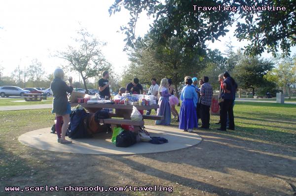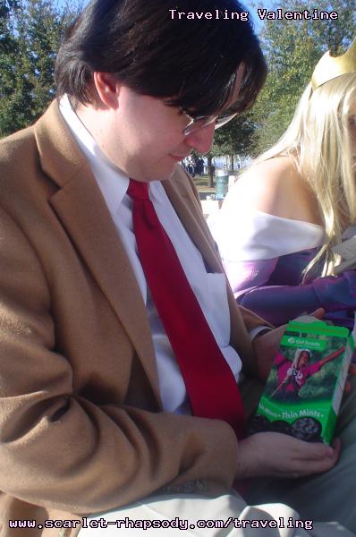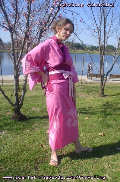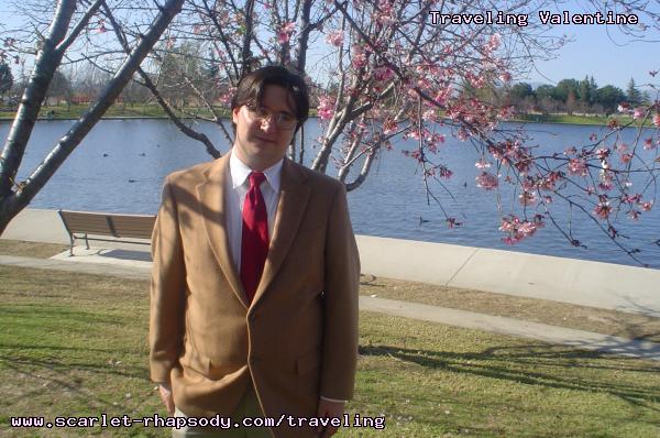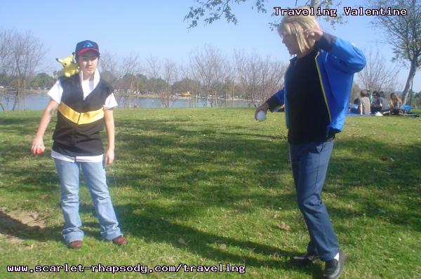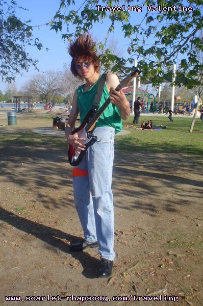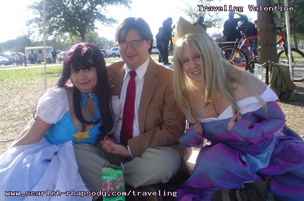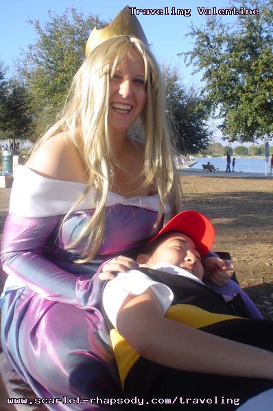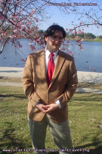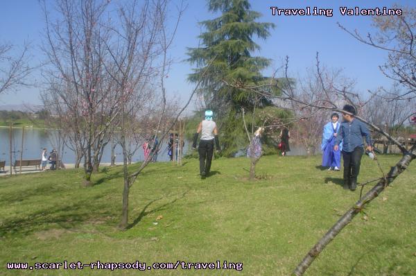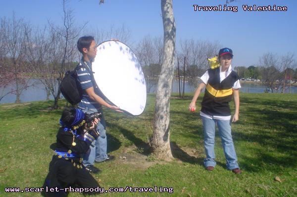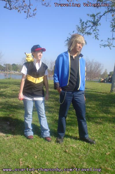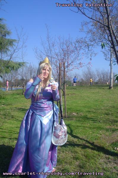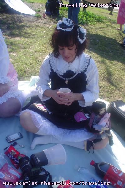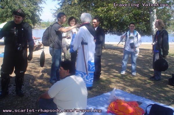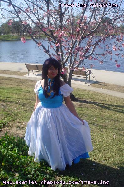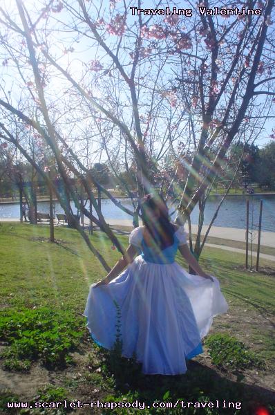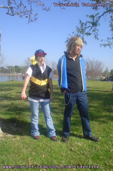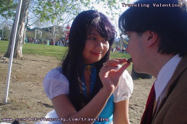 | Curtain up! Light the lights! Nothing to hit but the sunny and decadent San Fernando Valley. Per usual, Stan, the official Traveling Valentine chauffer took the crew up to Sakura Watch at Anthony C. Beilenson Park. The organizers worried that the rain earlier in the week would damage any chance of the bloom. However, we had a slight improvement from the previous week. We hit some traffic on the 405 North, but this is Los Angeles, what else is new? We finally arrived at Lake Balboa at 1PM. Unfortunately, we did not where the designated meeting point was. We parked on the “waterfall side” of the lake. There were no cosplayers in sight. However, Carolyn and I ran into a few little girls who greeted us with a, "Hi Sleeping Beauty and Hi Snow White!" That was cute. We ran into Kenji, who was also looking for everyone else. After sending the usual “Where the hell are you?” phone calls, we found out that everyone was on the other side of the lake on the “playground side.” There was a nice picnic set up with tents and food. It was very nice of Jason and his crew to have this set up earlier in the day. I gave Julia her birthday present. She was turning 18, therefore Julia finally can graduate from minor-dom. Sorry, Carolyn. I gave Julia her present in a Frederick’s of Hollywood bag. (I didn't have any spare wrapping paper.) Everyone was quite suspicious of what she could get for her 18th. In the end, she discovered the Victoria Secrets beauty set I got her. On the lakeside area by the playground, we also ran into Mr. Postman and few of his Lolita friends. Unaware of the Sakura Watch gathering, Mr. Postman and his crew decided on an impromptu gathering the night before. It was a pleasant surprise seeing the Dollfie Dream pimp and a few Asian Ball Joint Dolls present at the lake. Too bad I left Cosette and Eponine in the car. Of course, Sakura Watch is all about the photo shoots. Though the cherry blossom trees were not like the ones you would find in a shoujo anime, we made the best for what he had available to us. The trees were not dead, but everyone who showed up in costume still had a chance to get some nice background for their cosplays. Originally, I was supposed to also wear Karen Kasumi from X/1999, but the X/1999 photo shoot had to be delayed for another week. I opted to cosplay as Nadeshiko Kinomoto from Card Captor Sakura because I heard Julia was going to cosplay as Sakura. However, he plans fell through. The story behind Nadeshiko is I cosplayed her because I was cast as her in a fandub project based on “The Flower” episode. Though I had the costume since 2002, I always had a Touya, a Sakura, and a Tomoyo. Yet, never a Fujitaka. Jared decided to cosplay as my teacher-husband for the shoot that day. Julia was very nice to do a photo shoot of the two of us. Thanks to Carolyn for taking pictures with my camera. (Though Julia suggests that everyone should pitch in to get Victoria a new camera since I had to downgrade to my older digicam since my other camera was stolen at Disneyland) In Julia's own words, "I'd ship it." Technically, I did have a Touya at the shoot. Caitlin was cosplaying as a Tsubassa variant of Touya Kinomoto. Here’s a shot of Touya trying to get in mah belly. Now all we need is the Sakura to get the full family portrait... Deb cosplayed as Ash from Pokemon: Diamond and Pearl. Stan also cosplayed as Volkner from the same series. Caroyln cosplayed as Princess Aurora from Disney's Sleeping Beauty. If you take a closer look at her fabric, you will notice that the color shifts from blue to pink, just like in the movie. Carolyn found this fabric for under $3 a yard at the Los Angeles fashion district. Even while taking glamour shots of the famed Disney princess, a few little girls continued to greet her. And here's Kate as Fuu from Samurai Champloo encouraging Traveling Valentine readers to drink Aloe Vera, the unofficial drink of Sakura Watch 2009. Jared and I took a few single shots of our Card Captor Sakura costumes. The funny part is, Jared will be pratically wearing the same suit for the X/1999 gathering the following week. A few people mistook him for Light from Death Note. I joked around that I should do the schoolgirl version of Nadeshiko to make this December-May pairing look more wrong than it should. As long as Jared does not make a Nadeshiko and Fujitaka amv to The Police's "Don't Stand So Close to Me," things will be fine. Carolyn discovered one of the joys of the park - the ice cream man! There was an ice cream truck parked right by our designated picnic area. Because of Carolyn's affinity for Power Puff Girls (and all things Cartoon Network), she was eating a Bubbles on a stick. "Are you eating Tiffany?" I asked. Our mutual friend, Tiffany, cosplays as Bubbles. Feeling tired from the San Fernando Valley sun, we decided to rest up in the picnic area. Stan gave us Girl Scout Thin Mint cookies. I took a few riceballs for sustenance. Carolyn and Deb were cuddling up because Carolyn needed a proxy boyfriend for the rest of the day. At this point, it was rest and relaxation and just random chit chatting among friends. To my surprise, The Hooded Man (aka the guy formerly known as Rey Rey), showed up to the gathering. The nice part about this gathering is that everyone was well behaved and there were no "Ramune Babies" present to whack innocent bystanders with yaoi paddles or to quote the latest Internet meme. Rey Rey, Angela, Jared, Carolyn, Deb, Stan, and I talked about the good old days and how much this gathering reminded us about the time when our fandom was not infected with the "Ramune Babies." Considering our first anime events were in the late 90's / early 2000's, maybe we're just looking at things from a much more grown up perspective. Maybe. Dusk was approaching. Angela pointed out that no one was using the "popular" trees for photos, so we decided to take advantage of getting last minute photos before leaving. The 5PM hour was a perfec