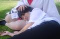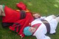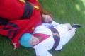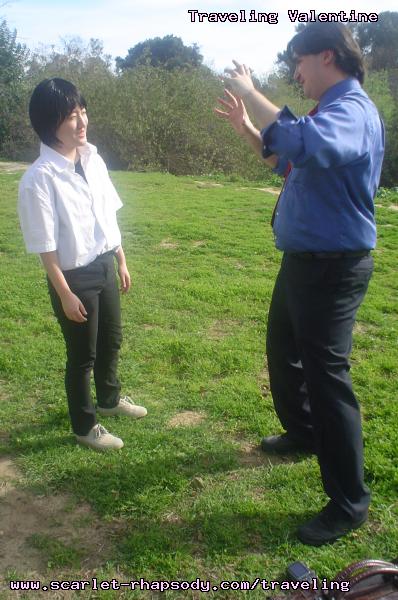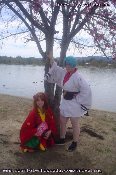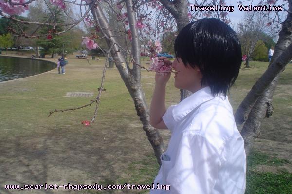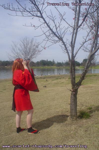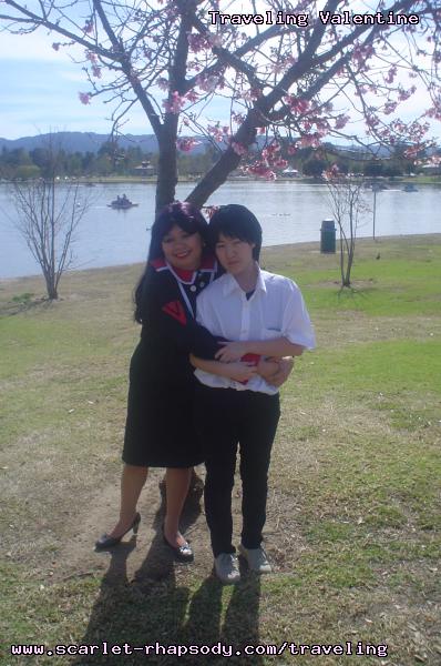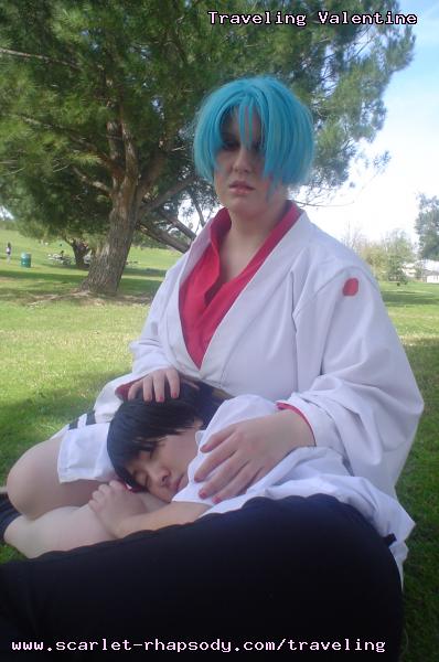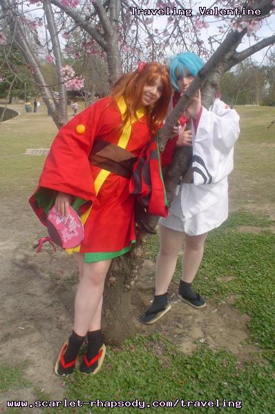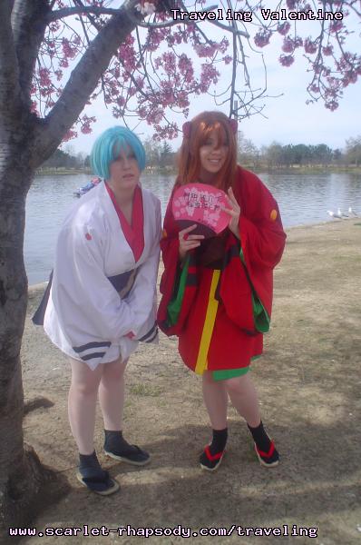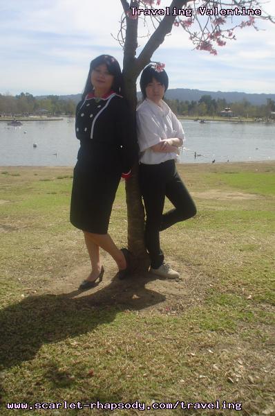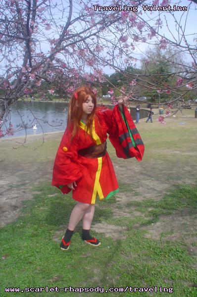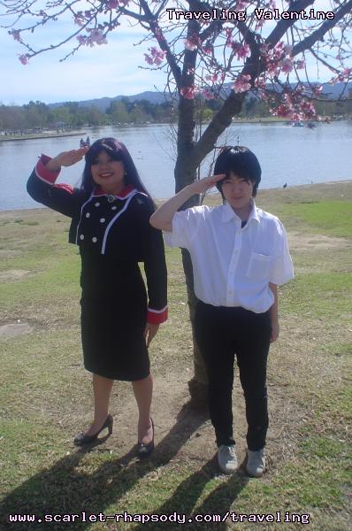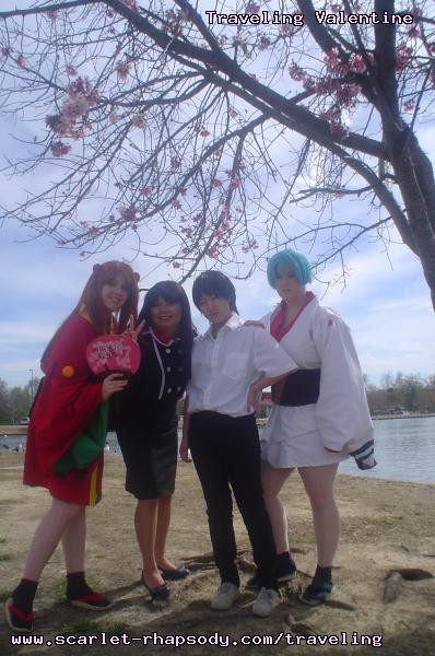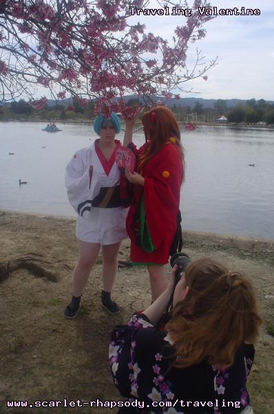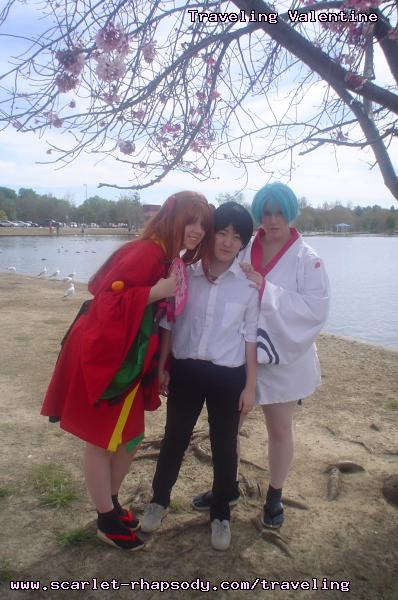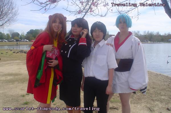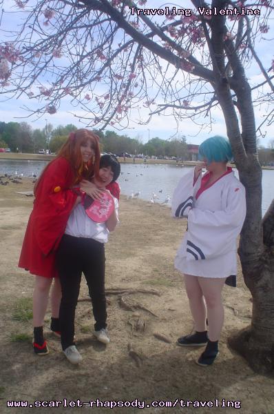 | "This is depressing," said Carolyn dressed as a summer festival version of Rei Ayanami. For the cast of Evangelion, the glass was half empty. Hardly any trees matured into bloom. However, there were very few trees that had the pink petals that we all know and love. Stan drove us through Lake Balboa. No other cosplayers bothered to show up. Was this a waste of time? No cherry blossom trees in sight. Deb (as Shinji) begun to turn into an emo state of mind despite Carolyn's protest. "You can't be emo. I haven't slapped you yet." Stan and I decided to label the February 28th date as "Week Zero" due to the fact that we looked at the time spent at Lake Balboa as a re-con assignment. In other words, we now know what are some scenic locations for cosplay photos for the new few weeks. Julia and Caitlin pulled into the parking lot. Julia was dressed up as Asuka on the summer festival variant. Caitlin was showing her sakura spirit by wearing a simple kimono. Despite no trees in bloom, we were all here together. Good friends in costume armed with cameras. Maybe the glass is half full? We ran into other cosplay community members - Kenji and Matt. We were in costume, let's take pictures. Our Evangelion cast consisted of Carolyn (Rei Ayanami), Julia (Asuka), Deb (Shinji Ikari), and your's truly (Misato Katsuragi). Of course, Stan decided to be the rebel and cosplay as the Lard Lad (aka Train from Black Cat). All he really needs is the girl. There were other trees in bloom. Might as well take advantage of the location while we're in costume! Does this Misato variant look unfamiliar to you? Misato only wears it in one episode, A Human Work, otherwise, known as the Jet Alone episode. We decided to take a break from photo shoots and just sat around in a circle catching up on life. Caitlin decided to take a cat nap on the grassy knoll. Shinji (Deb) wanted to take a nap on Rei (Carolyn). And then it was back to work. Caitlin wanted a few cutesy photos of her Japanese kimono. I also took the opportunity to get a few Shinji and Misato photos. You never know with strange pairings... Kenji, Matt, Julia, and Caitlin parted ways with us. Yet, Jared arrived fashionably late in his Kaji. Though Asuka left and Rei changed into a busty and blonde high schooler, we still had the Shinji to push around. Because Deb and I watched Evangelion: reDeath the night before, Deb and Jared reenacted the melons sequence. And yes, there is video of the melons sequence.