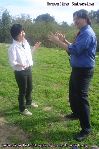 And what's Misato without a Kaji? However, all of us agreed that the real star of the pseudo-cosplay-gathering was the ground hog that kept popping up during the Misato and Kaji shots. So much, that we started to give the groundhog a photoshoot of his own. Stan joked around that Jared should cosplay as Bill Murray from Groundhog Day, though Jared was feeling more Caddyshack. We've all heard of The Hedgehog's Dilemma, but The Groundhog's Dilemma's is just ridiculous! Well, at least he did not mind that we were having a photo shoot on his property. After a nice day at the park, we went to the local In and Out Burger wondering about what our Bay Area friends were up to at Wonder Con. Of course, if Carolyn were there, she'd kidnap Mark Hamill. Though Sakura Watch Week Zero was not technically a con, Carolyn decided to make her place the video room where we watched the Firefly pilot and Kujibiki Unbalance (aka Dropkick Us for We are Footballs: The Anime!). Be sure to check out Stan's Week Zero photos at his Photobucket!