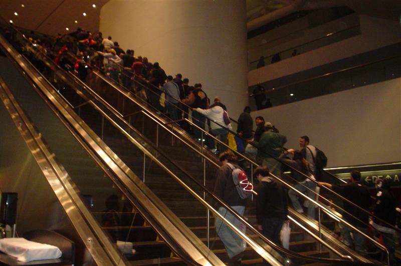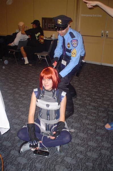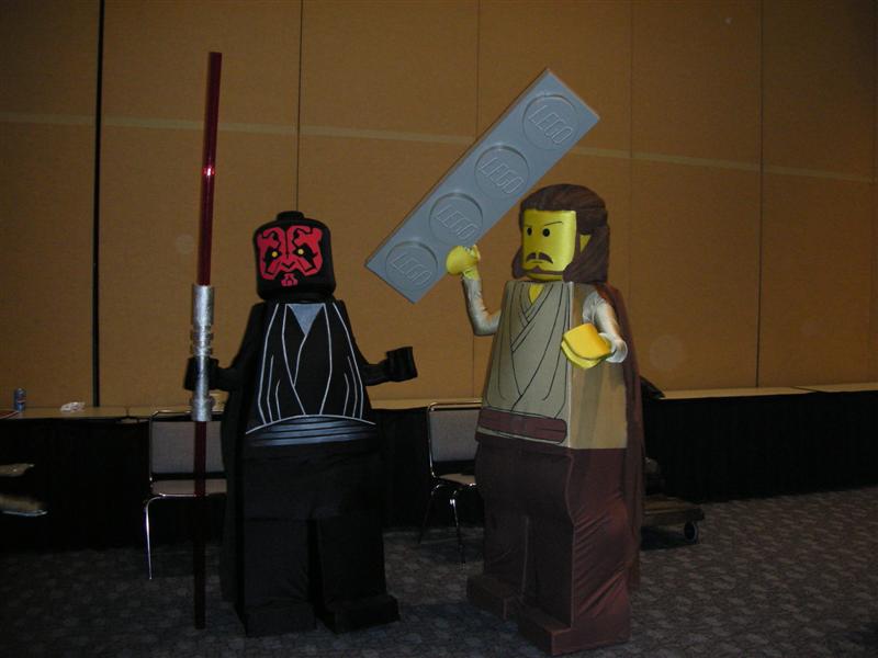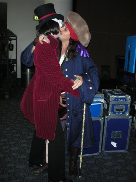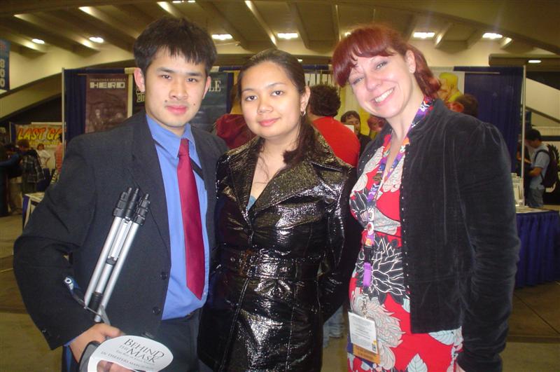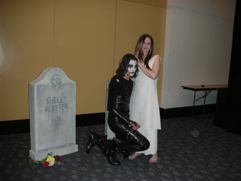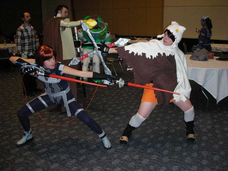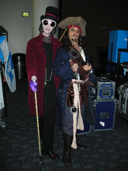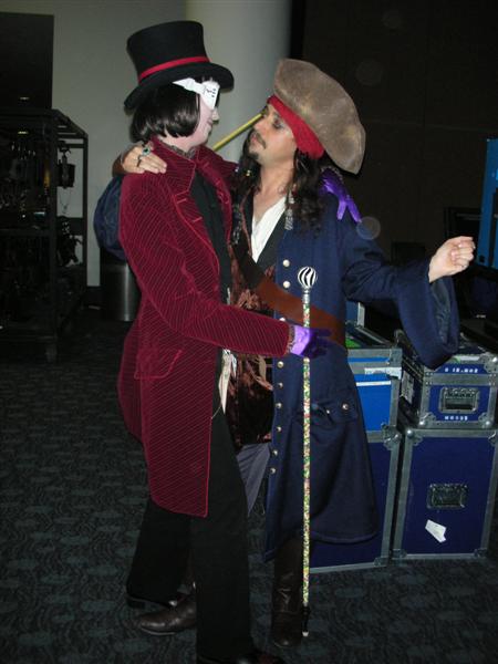 After dinner, we walked back to the Moscone Center. We ran into my former roommate, Chris. To kill time before masquerade, we did one more round in the Dealer's Room. Tom was on the hunt for "Sledge Hammer" comics. I just wanted to look at the varieties of fandom present. We also ran into our friends Juan, Nessa, and Francine. While waiting for masquerade to start, Tom and I went in line and played poker. Grant ran into us and escorted us into the main ballroom. We sat right by the Consplayers family. Because we were press, we had a sneak peak at what was going on backstage before the show. While most of the photographers were in the green room, Consplayers and Traveling Valentine were in the audience enjoying and recording the show. Several highlights included Lego Star Wars, The Crow, Monty Python's Holy Grail, House of Flying Daggers, a double dose of Johnny Depp in the form of Jack Sparrow and Willy Wonka, Buzz Lightyear, and many more. It was a pleasure seeing talent up close on stage. The MC was the same guy from World Con. It was great seeing him host this one. I went backstage to take more photos of the costumers. My camera ran out of batteries, so Tom let me use his camera for back up. Thanks, Tom. We were in a treat for the halftime show. Mr. Lobo of Cinema Insomnia hosted this year's show again. There were several audience participation bits during his halftime sketch. Tom volunteered for the assemble a skeleton bit. Mr. Lobo dubbed him as Indiana Jones in his teaching days, even though he was dressed up as James Bond (wouldn't that be his father?). Among the halftime entertainment, Pepper Alexandria and her harem of bellydancers shook their thing. So, who won Wonder Con's masquerade honors? Dany (from The Crow sketch) gave this bit of information. Best in Show, First Place: Darth Maul and Qi Gon Gin (Lego Star Wars) Second Place: Obi Wan and Anikin training (Star Wars) Best Workmanship: AJ & Candice (House of Flying Daggers) Honorable Mentions: Jack Sparrow & Willy Wonka, World of Warcraft, Superman, Teen Titans, The Crow, and Buzz Lightyear Right after halftime, Tom and I left to go back to our tiny motel and called it a night from there. We were already looking forward to what wonders Comic-Con will bring us this summer. Pictures are copyright by Victoria Erica. If I took your picture, feel free to use it on your site or cosplay gallery. If you want me to remove something, kindly email me. While you're here, do sign the guestbook. This site was brought to you by the font Kismet Normal. |