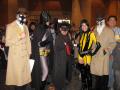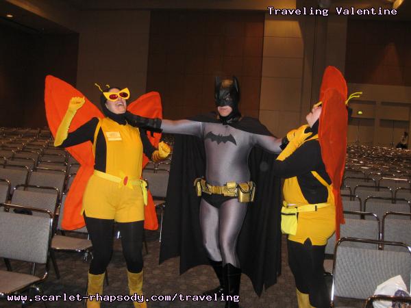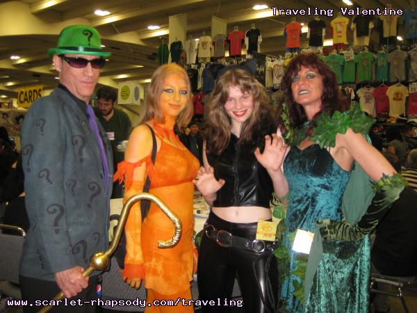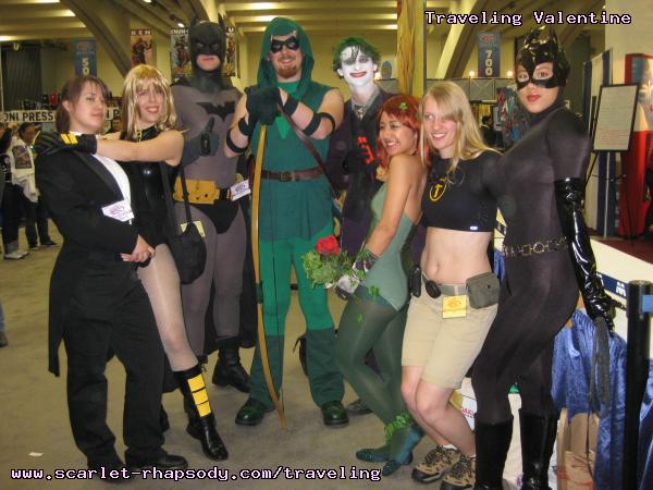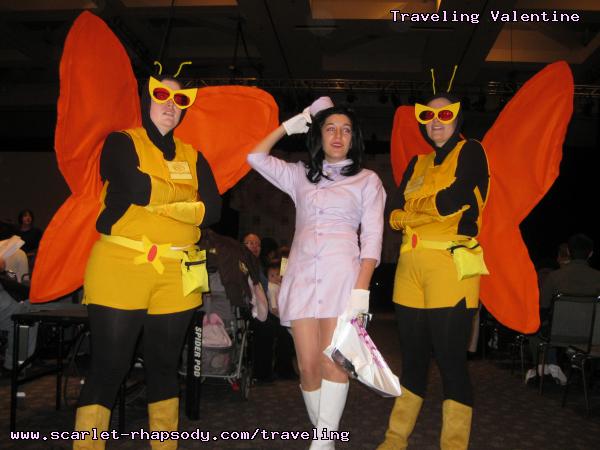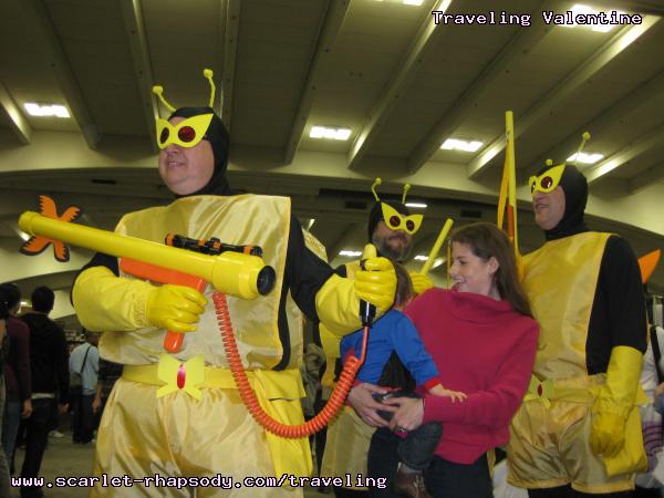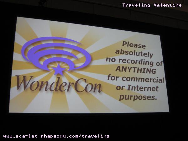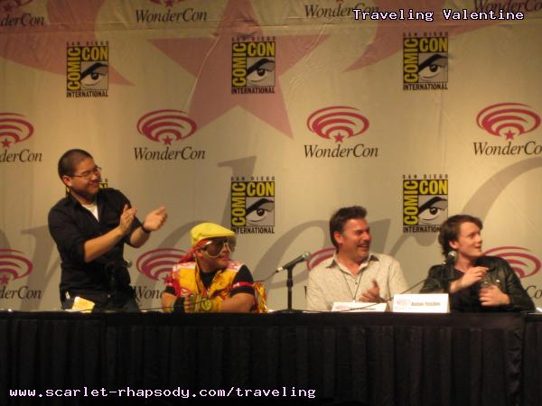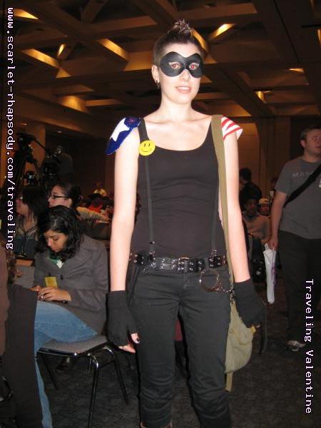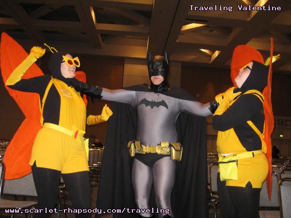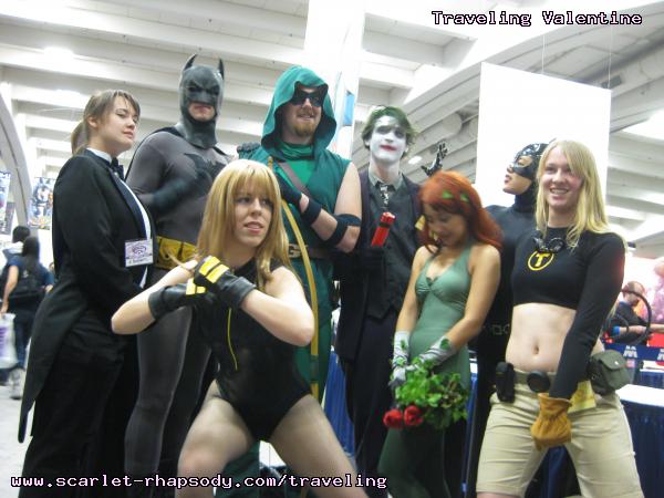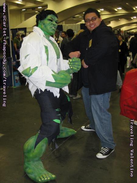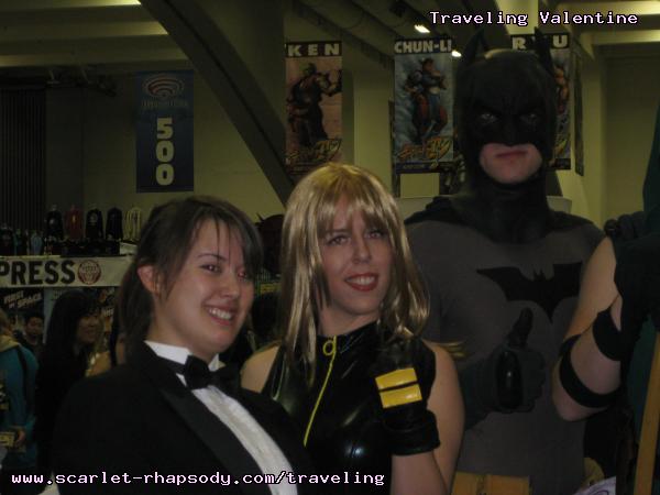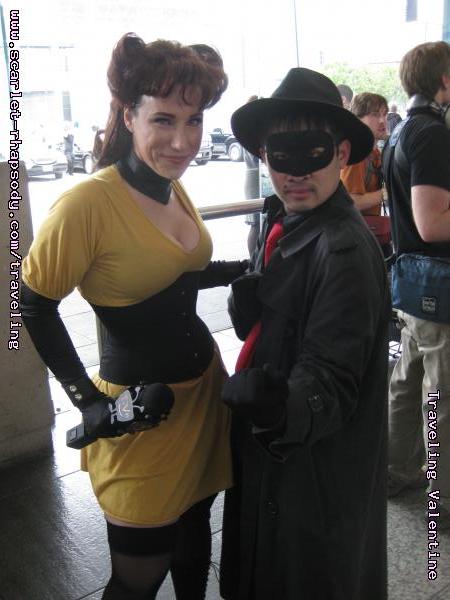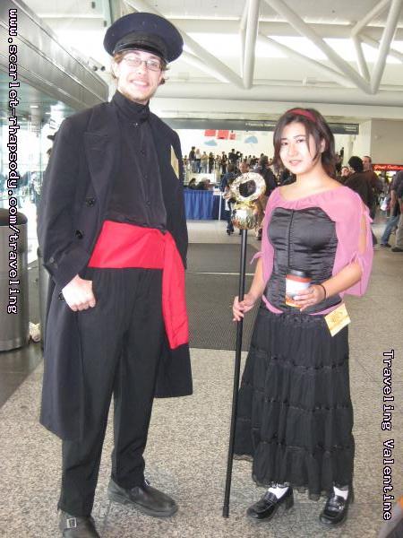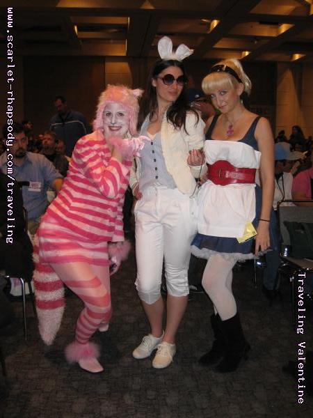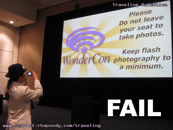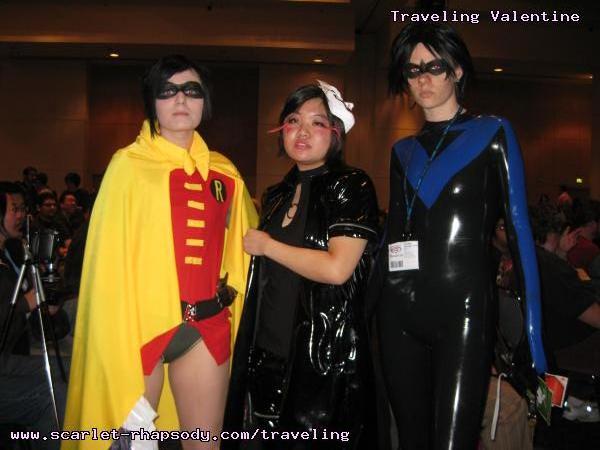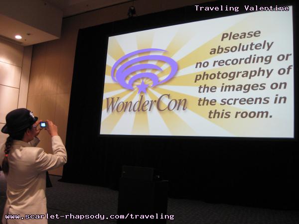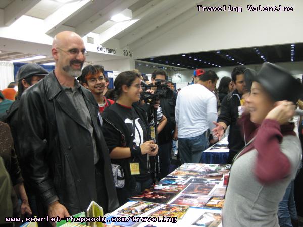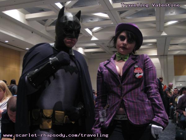 | You may find yourself awake at 7AM on a Saturday. You may find yourself dressed as a comic book character from a movie you never finished because you left the theater in the middle of it. You may find yourself half asleep inside a BART train. You may find yourself getting stared at by passengers because of your black suit, black trenchcoat, red tie, stylish black hat, and black mask you're wearing. You may find yourself walking to the Moscone Center. You may find yourself standing in line for two hours for a panel. You may find yourself getting asked to have your picture taken. You may ask yourself, "My God, are we inside yet?" Letting the minutes go by, as the attendees trickle into the Esplanade Ballroom. Letting the photographers shoot pictures, as the costumed heroes pose. Into the seats we go, as the "Watchmen" panel begins. Once in a lifetime, you see the costumed heroes without their masks. You may find yourself noticing blood on an exit sign. You may find yourself reading the WonderCon rules and requests. You may find yourself staring at the spacious stage where the panelists will speak. You may find yourself performing an epic fail. The "Watchmen" panelists praise their film. Same as it ever was. Same as it ever was. Same as it ever was.* Click here for the "Watchmen" panel synopsis. You may find yourself admiring the zoom on your camera. You may find yourself leading a damned dirty ape to the Masquerade registration. You find yourself being taken by your hand through mobs of people. You may find yourself with a new "Watchmen" Comedian pin. Watching exclusive sneak peeks of "Astroboy." Watching Nicholas Cage develop a third facial expression. Watching cheesy B sci-fi movies remade into cheesy B sci-fi movies with current technology. Once in a lifetime, you're watching these sneak peeks before anyone else. Back at the Dealers Hall, where there is plenty to see. And the goods cost plenty of coin. Mark Hamill's autograph goes for $100. But the second is only $90. Ryo-ohki's only costs $10. So there's money for her, and a memory for me. You may find yourself easily recognized despite wearing a mask over your face. You may find yourself running back to the Esplanade Ballroom. You may find yourself suddenly interested in this summer's "Star Trek" film. You may find yourself answering a quick question from TiVo's "BaDoop BaDoop Show." You may find yourself too tired to fight the lines to "Star Trek." You may find yourself back outside waiting in line to enter the Esplanade Ballroom. You find yourself thinking the line is worse than Disneyland. You may find yourself relieved to finally enter the room. You may find yourself listening to Elijah Wood answering yet another question related to the "Lord of the Rings." You may find yourself thinking his new animated film "9" reminds you of a little big PS3 game. The team behind Pixar's "Up" praise their film. Same as it ever was. Same as it ever was. Same as it ever was.* Click here for the "Up" preview synopsis. The "Terminator Salvation" panelists praise their film. Same as it ever was. Same as it ever was. Same as it ever was.* Click here for the "Terminator Salvation" panel synopsis. Letting some frustration out with old-fashioned violence. Letting the sharp dressed suits get some shots of themselves. Meeting some good old friends, if only in passing. This sort of stuff does not happen once in a lifetime. You may find yourself hungry after 10 hours without food. You may find yourself dining with a pair of cute twins who cannot be any more asymmetrical. you may find yourself introduced to their friends Dennis and Rose. You may find yourself thinking the guy who approves the food at Jollibee is in dire need of functioning taste buds. You may find yourself satisfied that at least the Jollibee food provides the calories to keep you going. You may find yourself reviewing your EMT training and experience in field diagnosis. You may ask yourself, "Am I finally done writing this convention report section in bizarre new wave prose?" *Who takes a break from their busy schedule to come to a con and say their upcoming project is crap? Of course they're going to praise their work! Pictures are copyright by Traveling Valentine. If we took your picture, feel free to use it on your site or cosplay gallery. While you're here, do sign the guestbook. This site was brought to you by a font of some sort. Many thanks to Chaz Boston Baden for the image resizing and watermarking program. |