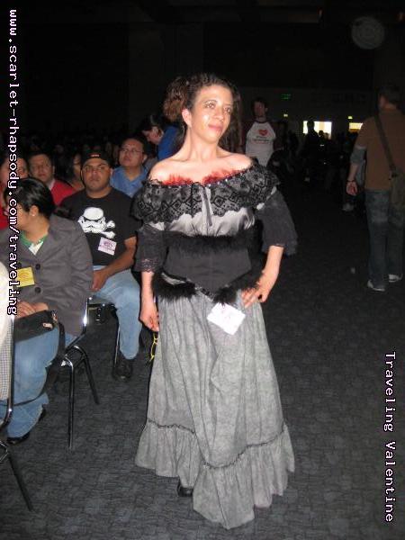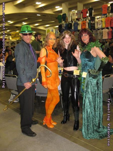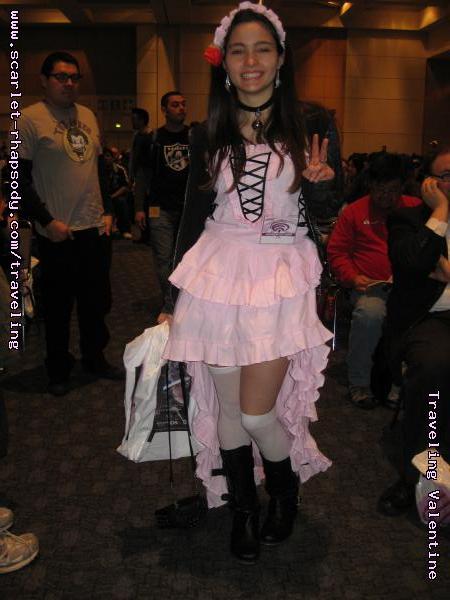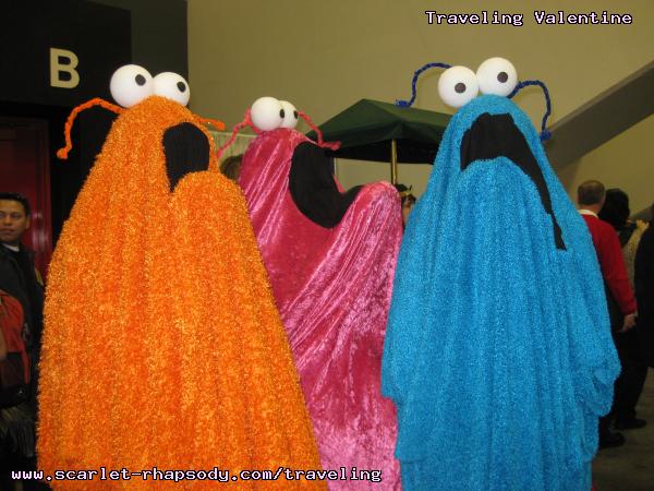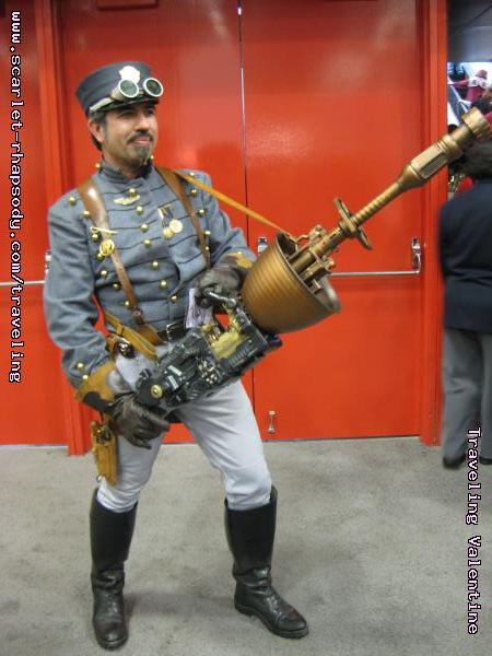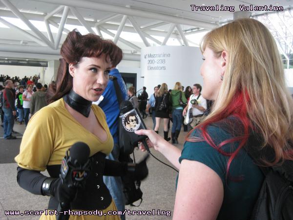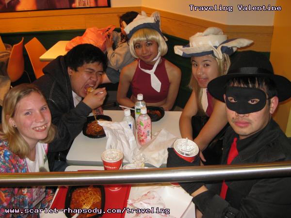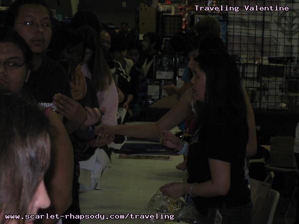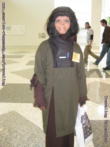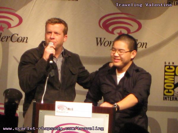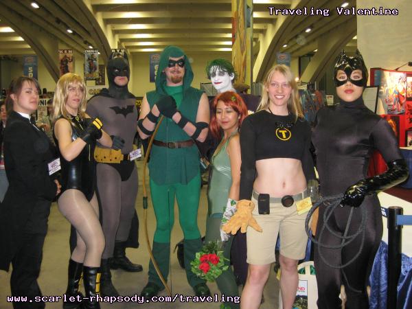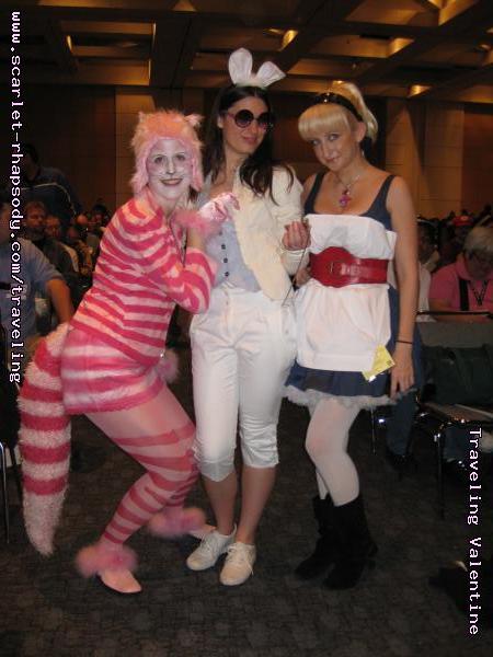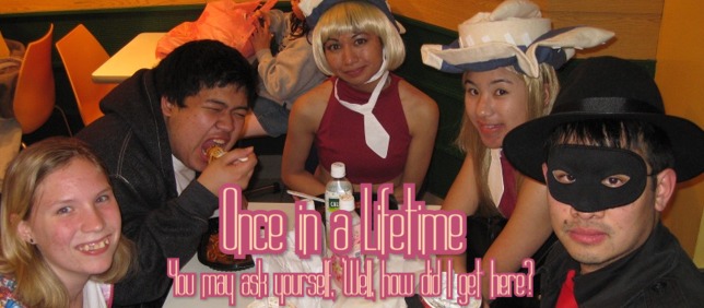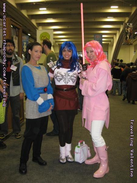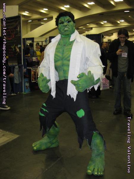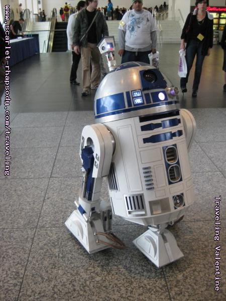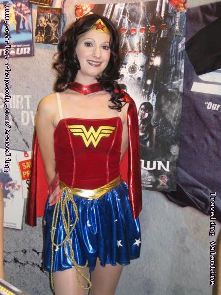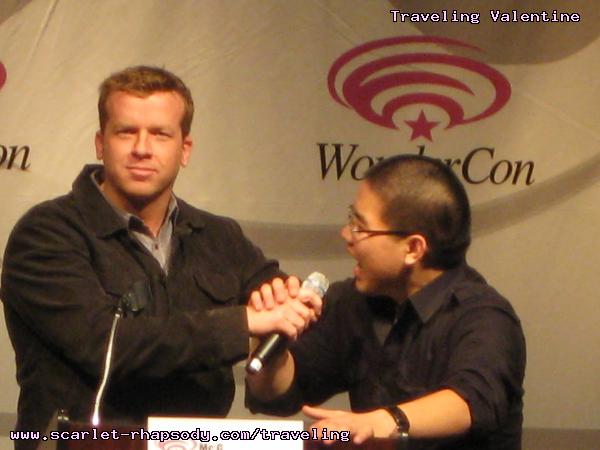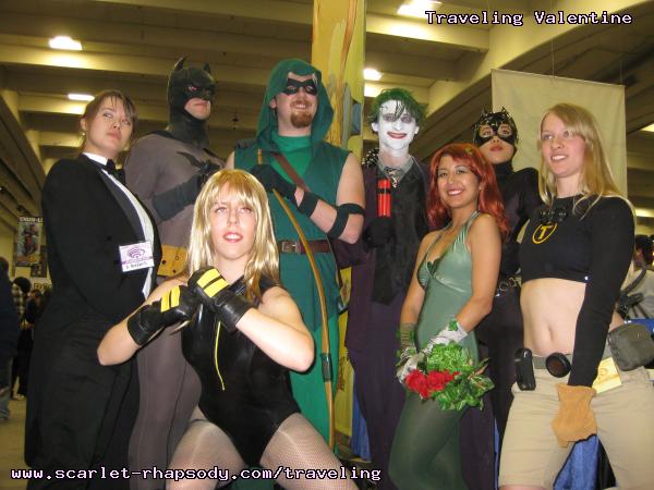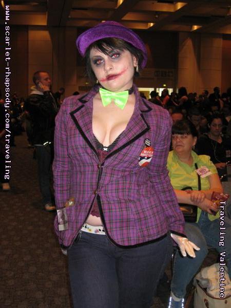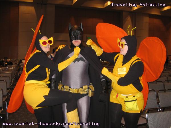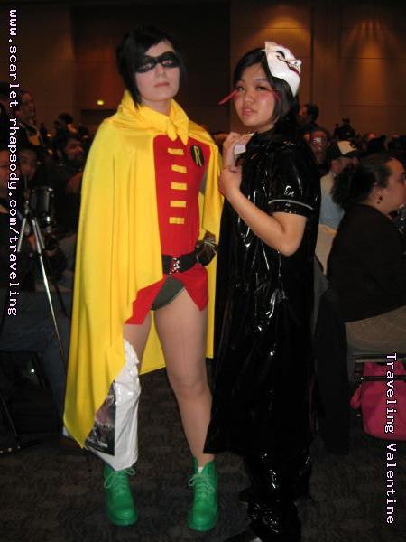 | You may find yourself awake at 7AM on a Saturday. You may find yourself dressed as a comic book character from a movie you never finished because you left the theater in the middle of it. You may find yourself half asleep inside a BART train. You may find yourself getting stared at by passengers because of your black suit, black trenchcoat, red tie, stylish black hat, and black mask you're wearing. You may find yourself walking to the Moscone Center. You may find yourself standing in line for two hours for a panel. You may find yourself getting asked to have your picture taken. You may ask yourself, "My God, are we inside yet?" Letting the minutes go by, as the attendees trickle into the Esplanade Ballroom. Letting the photographers shoot pictures, as the costumed heroes pose. Into the seats we go, as the "Watchmen" panel begins. Once in a lifetime, you see the costumed heroes without their masks. You may find yourself noticing blood on an exit sign. You may find yourself reading the WonderCon rules and requests. You may find yourself staring at the spacious stage where the panelists will speak. You may find yourself performing an epic fail. The "Watchmen" panelists praise their film. Same as it ever was. Same as it ever was. Same as it ever was.* Click here for the "Watchmen" panel synopsis. You may find yourself admiring the zoom on your camera. You may find yourself leading a damned dirty ape to the Masquerade registration. You find yourself being taken by your hand through mobs of people. You may find yourself with a new "Watchmen" Comedian pin. Watching exclusive sneak peeks of "Astroboy." Watching Nicholas Cage develop a third facial expression. Watching cheesy B sci-fi movies remade into cheesy B sci-fi movies with current technology. Once in a lifetime, you're watching these sneak peeks before anyone else. Back at the Dealers Hall, where there is plenty to see. And the goods cost plenty of coin. Mark Hamill's autograph goes for $100. But the second is only $90. Ryo-ohki's only costs $10. So there's money for her, and a memory for me. You may find yourself easily recognized despite wearing a mask over your face. You may find yourself running back to the Esplanade Ballroom. You may find yourself suddenly interested in this summer's "Star Trek" film. You may find yourself answering a quick question from TiVo's "BaDoop BaDoop Show." You may find yourself too tired to fight the lines to "Star Trek." You may find yourself back outside waiting in line to enter the Esplanade Ballroom. You find yourself thinking the line is worse than Disneyland. You may find yourself relieved to finally enter the room. You may find yourself listening to Elijah Wood answering yet another question related to the "Lord of the Rings." You may find yourself thinking his new animated film "9" reminds you of a little big PS3 game. The team behind Pixar's "Up" praise their film. Same as it ever was. Same as it ever was. Same as it ever was.* Click here for the "Up" preview synopsis. The "Terminator Salvation" panelists praise their film. Same as it ever was. Same as it ever was. Same as it ever was.* Click here for the "Terminator Salvation" panel synopsis. Letting some frustration out with old-fashioned violence. Letting the sharp dressed suits get some shots of themselves. Meeting some good old friends, if only in passing. This sort of stuff does not happen once in a lifetime. You may find yourself hungry after 10 hours without food. You may find yourself dining with a pair of cute twins who cannot be any more asymmetrical. you may find yourself introduced to their friends Dennis and Rose. You may find yourself thinking the guy who approves the food at Jollibee is in dire need of functioning taste buds. You may find yourself satisfied that at least the Jollibee food provides the calories to keep you going. You may find yourself reviewing your EMT training and experience in field diagnosis. You may ask yourself, "Am I finally done writing this convention report section in bizarre new wave prose?" *Who takes a break from their busy schedule to come to a con and say their upcoming project is crap? Of course they're going to praise their work! Pictures are copyright by Traveling Valentine. If we took your picture, feel free to use it on your site or cosplay gallery. While you're here, do sign the guestbook. This site was brought to you by a font of some sort. Many thanks to Chaz Boston Baden for the image resizing and watermarking program. |