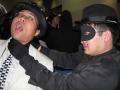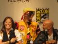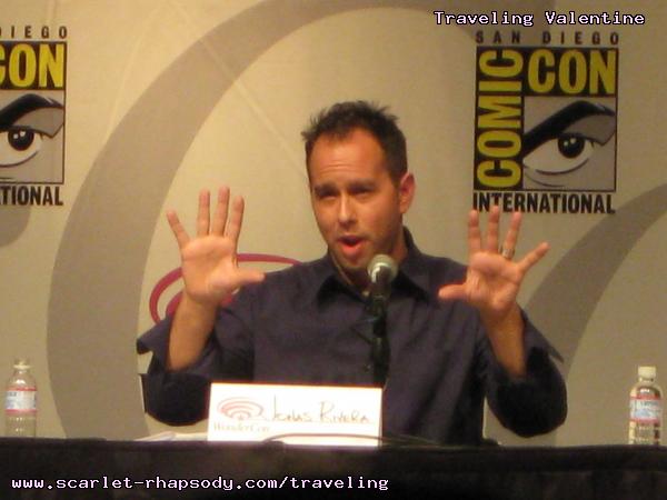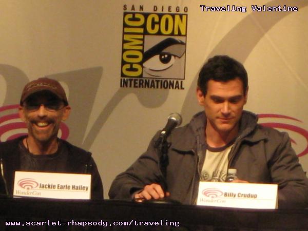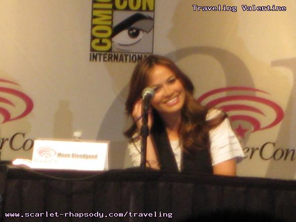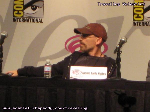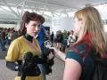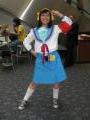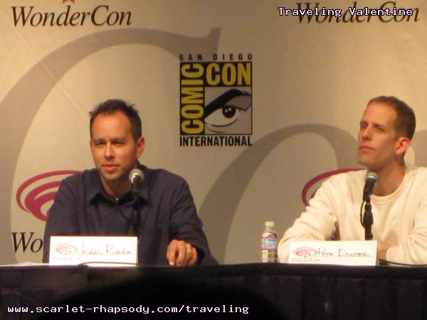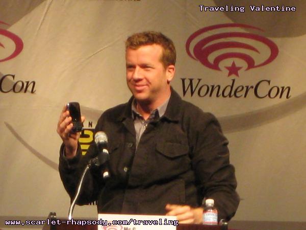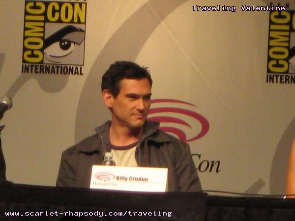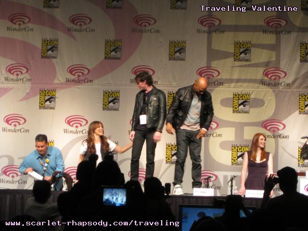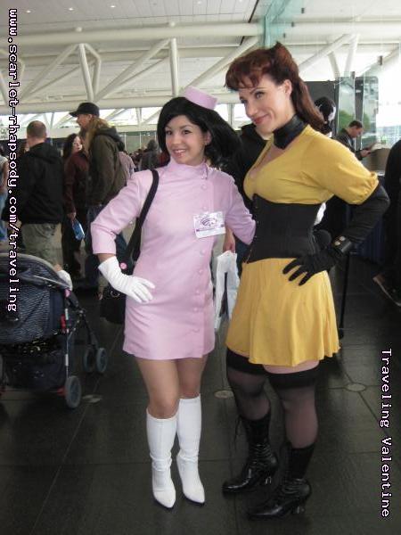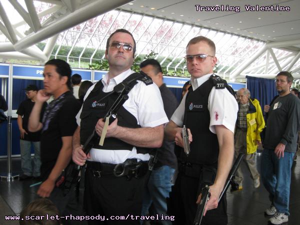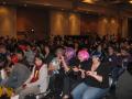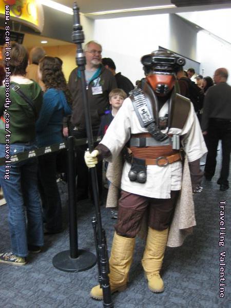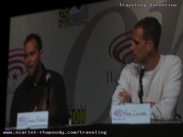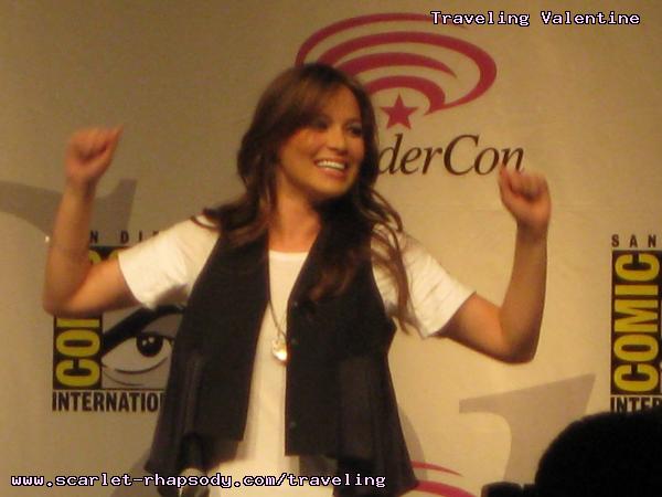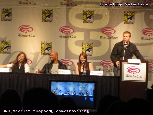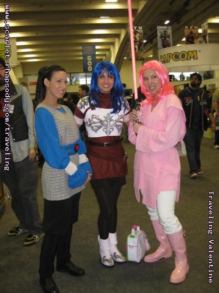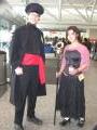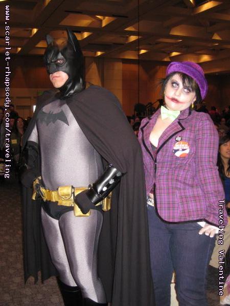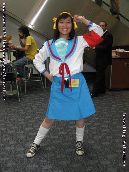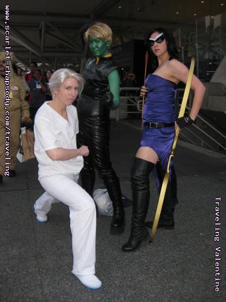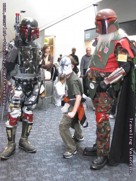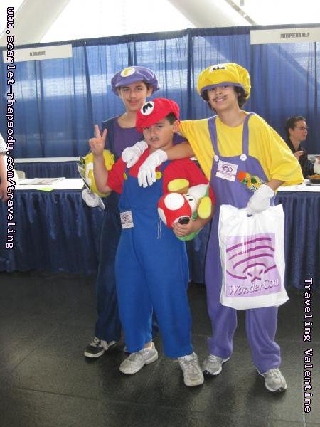 | You may find yourself awake at 7AM on a Saturday. You may find yourself dressed as a comic book character from a movie you never finished because you left the theater in the middle of it. You may find yourself half asleep inside a BART train. You may find yourself getting stared at by passengers because of your black suit, black trenchcoat, red tie, stylish black hat, and black mask you're wearing. You may find yourself walking to the Moscone Center. You may find yourself standing in line for two hours for a panel. You may find yourself getting asked to have your picture taken. You may ask yourself, "My God, are we inside yet?" Letting the minutes go by, as the attendees trickle into the Esplanade Ballroom. Letting the photographers shoot pictures, as the costumed heroes pose. Into the seats we go, as the "Watchmen" panel begins. Once in a lifetime, you see the costumed heroes without their masks. You may find yourself noticing blood on an exit sign. You may find yourself reading the WonderCon rules and requests. You may find yourself staring at the spacious stage where the panelists will speak. You may find yourself performing an epic fail. The "Watchmen" panelists praise their film. Same as it ever was. Same as it ever was. Same as it ever was.* Click here for the "Watchmen" panel synopsis. You may find yourself admiring the zoom on your camera. You may find yourself leading a damned dirty ape to the Masquerade registration. You find yourself being taken by your hand through mobs of people. You may find yourself with a new "Watchmen" Comedian pin. Watching exclusive sneak peeks of "Astroboy." Watching Nicholas Cage develop a third facial expression. Watching cheesy B sci-fi movies remade into cheesy B sci-fi movies with current technology. Once in a lifetime, you're watching these sneak peeks before anyone else. Back at the Dealers Hall, where there is plenty to see. And the goods cost plenty of coin. Mark Hamill's autograph goes for $100. But the second is only $90. Ryo-ohki's only costs $10. So there's money for her, and a memory for me. You may find yourself easily recognized despite wearing a mask over your face. You may find yourself running back to the Esplanade Ballroom. You may find yourself suddenly interested in this summer's "Star Trek" film. You may find yourself answering a quick question from TiVo's "BaDoop BaDoop Show." You may find yourself too tired to fight the lines to "Star Trek." You may find yourself back outside waiting in line to enter the Esplanade Ballroom. You find yourself thinking the line is worse than Disneyland. You may find yourself relieved to finally enter the room. You may find yourself listening to Elijah Wood answering yet another question related to the "Lord of the Rings." You may find yourself thinking his new animated film "9" reminds you of a little big PS3 game. The team behind Pixar's "Up" praise their film. Same as it ever was. Same as it ever was. Same as it ever was.* Click here for the "Up" preview synopsis. The "Terminator Salvation" panelists praise their film. Same as it ever was. Same as it ever was. Same as it ever was.* Click here for the "Terminator Salvation" panel synopsis. Letting some frustration out with old-fashioned violence. Letting the sharp dressed suits get some shots of themselves. Meeting some good old friends, if only in passing. This sort of stuff does not happen once in a lifetime. You may find yourself hungry after 10 hours without food. You may find yourself dining with a pair of cute twins who cannot be any more asymmetrical. you may find yourself introduced to their friends Dennis and Rose. You may find yourself thinking the guy who approves the food at Jollibee is in dire need of functioning taste buds. You may find yourself satisfied that at least the Jollibee food provides the calories to keep you going. You may find yourself reviewing your EMT training and experience in field diagnosis. You may ask yourself, "Am I finally done writing this convention report section in bizarre new wave prose?" *Who takes a break from their busy schedule to come to a con and say their upcoming project is crap? Of course they're going to praise their work! Pictures are copyright by Traveling Valentine. If we took your picture, feel free to use it on your site or cosplay gallery. While you're here, do sign the guestbook. This site was brought to you by a font of some sort. Many thanks to Chaz Boston Baden for the image resizing and watermarking program. |