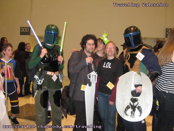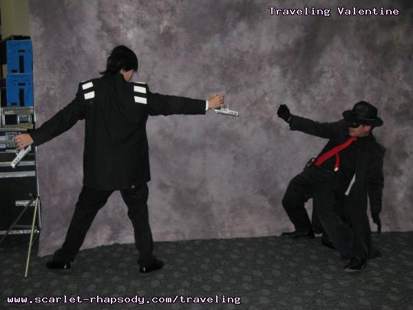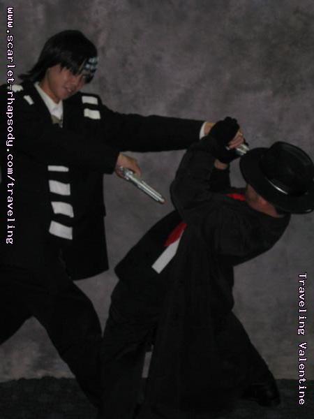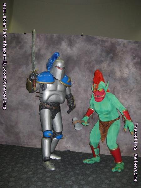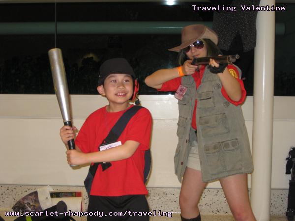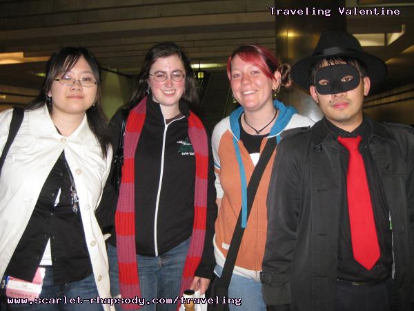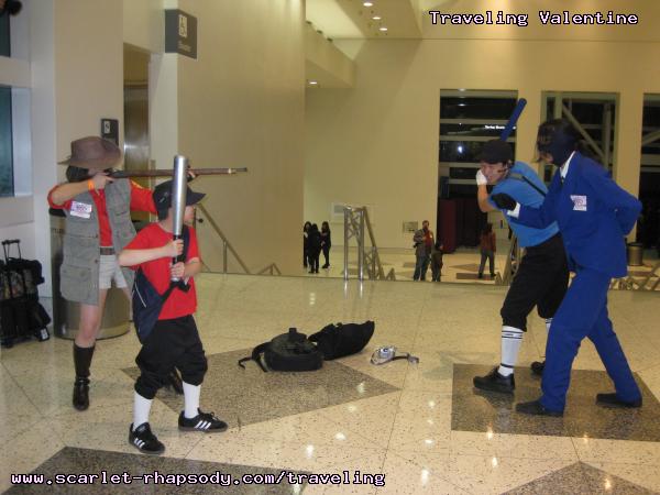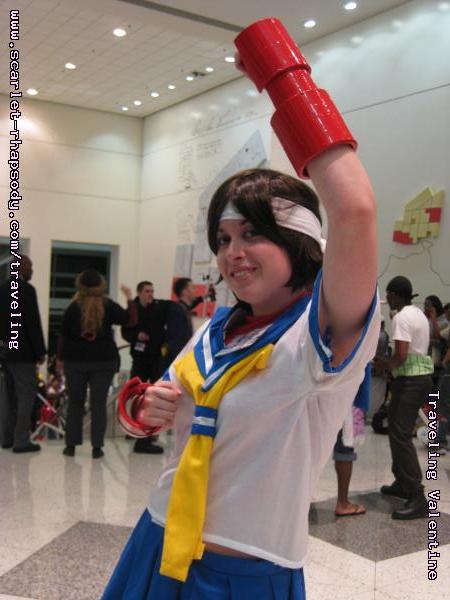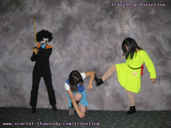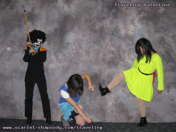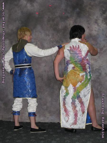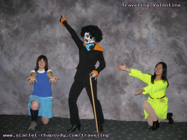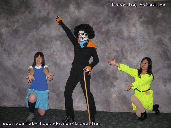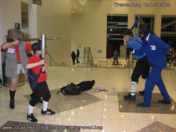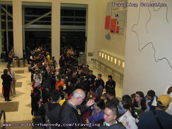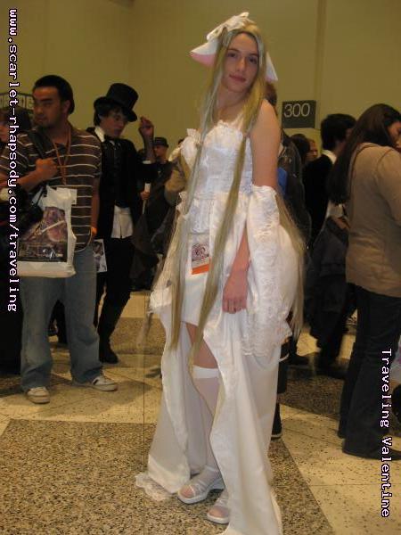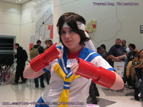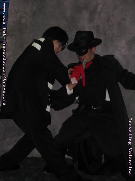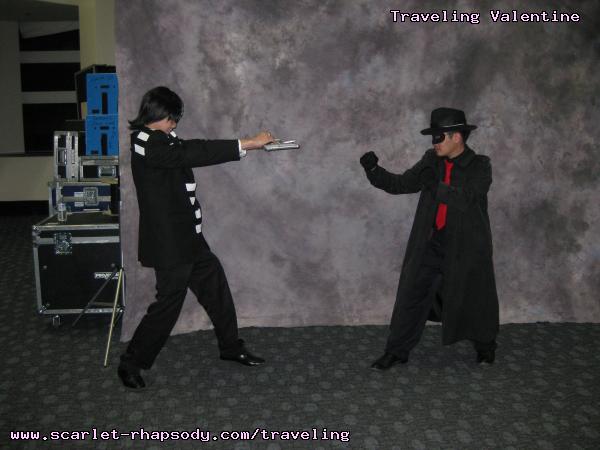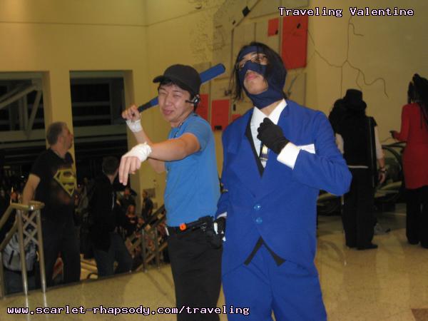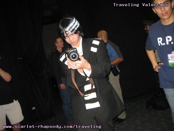 | If you ask the average costumer or cosplayer, Masquerade is the highlight of WonderCon and pretty much every convention. After shedding blood, sweat, tears, and funding to complete their costumes, costumers of various age and skill wanted to show the fruits of their labors on the stage of the Esplanade Ballroom. Whether through walk-ons or sketches, the costumed performers performed while the audience ooh'd and ah'd while the judges judged. Meanwhile, the trigger-happy members of the photographic Press would miss those performances in order to photograph those wonderful costumes backstage. We work hard and sacrifice hard for you. After dinner with Charie, Rose, Dennis, and Janelle Ann, I returned to the Moscone Center. Between stopping for photos, stopping to take photos, stopping to admire the long line, and stopping to figure out where Press had to go to get backstage, I killed a lot of time before finding my entry point. Following an unusually long detour through the service alleys, I found BART Boy, EBK Al, Mike, and other photographers setting up the photography area and getting angry at the caterers for removing the pasta and cheesecake we could have eaten during this long night. The official photographer for Masquerade judging shot Polaroids of the costumes to send to the judges. We managed to snap a few shots of a few costumes along with him before the official Masquerade. Kei and I volunteered as test targets for the backdrop. We came to blows just to see how The Spirit's abilities matched up against Death the Kidd's guns while determining the range for group shots. I got curious and checked out the technology used to display the video on the stage. The amount of equipment was mildly staggering. As we finalized the backdrop and firing squad positions, Phil Foglio the MC began the show and the costumes began trickling in after their performances. I shot what I could where I could. The average was 10 shots per act with an emphasis on covering fire. Whatever wasn't fuzzy or dark made it on here. One suggestion I would make for Masquerade is a printed list of the acts with the costumes and series from where they came. One large printout mounted backstage would make it easier to identify acts since some were not as familiar as others. As per my usual inability to remember who won what combined with not seeing any of the acts and the pressing need to catch one of the last BART trains of the night, I jetted home after the last act. I only stopped to snap a few pictures of costumes including a phallic Rorschach mask courtesy of Tog. On the BART station, I ran into Hoan, a previous acquaintance from the recent Animation on Display, and her cadre. We rode the BART together until I had to hit my transfer. It was a smooth trip home minus the fact I was still wearing my mask during most of the trip. Pictures are copyright by Traveling Valentine. If we took your picture, feel free to use it on your site or cosplay gallery. While you're here, do sign the guestbook. This site was brought to you by a font of some sort. Many thanks to Chaz Boston Baden for the image resizing and watermarking program. |