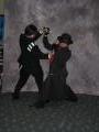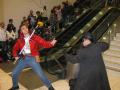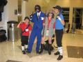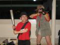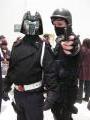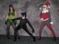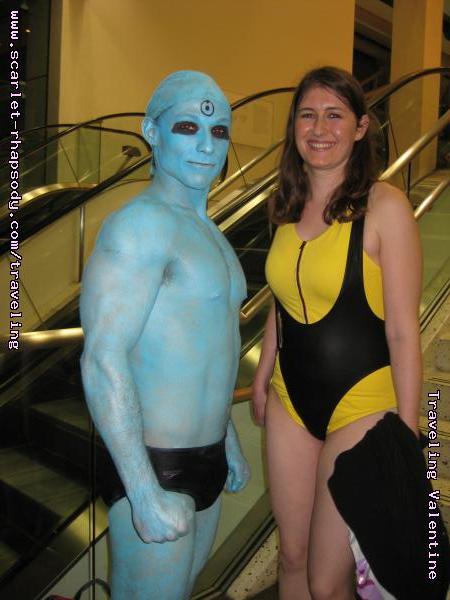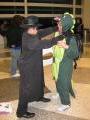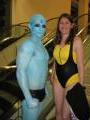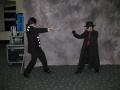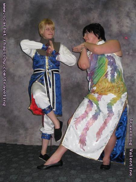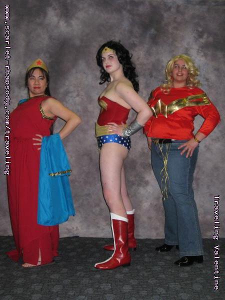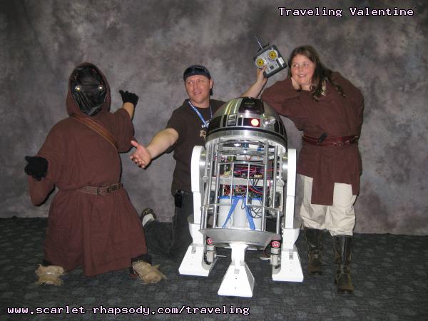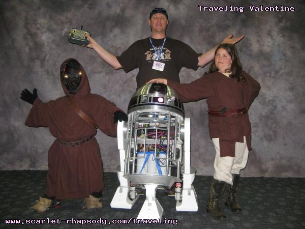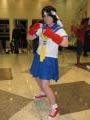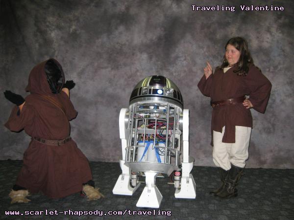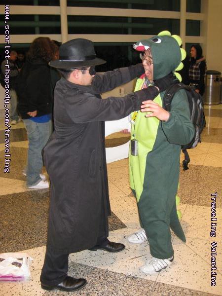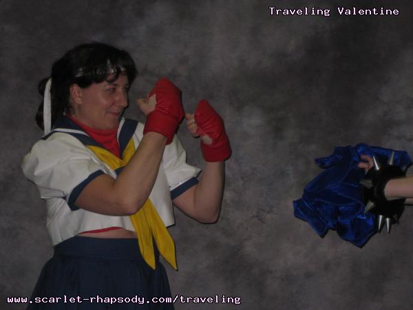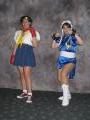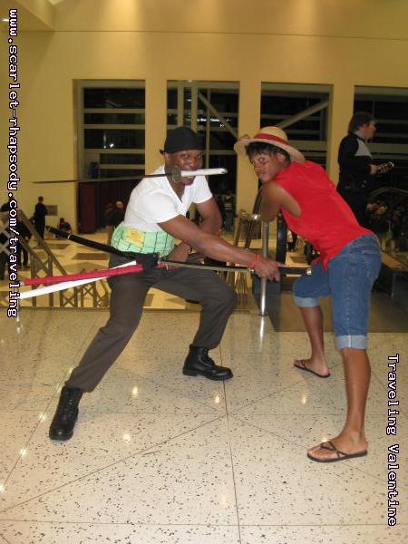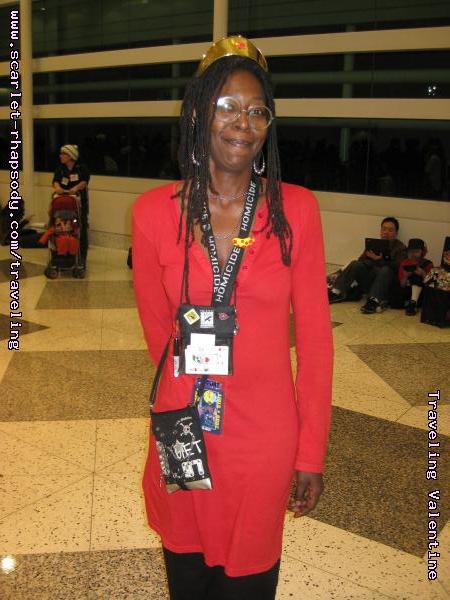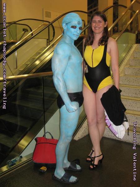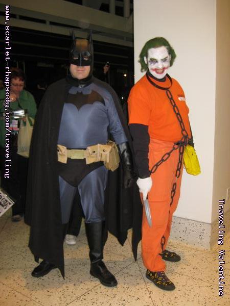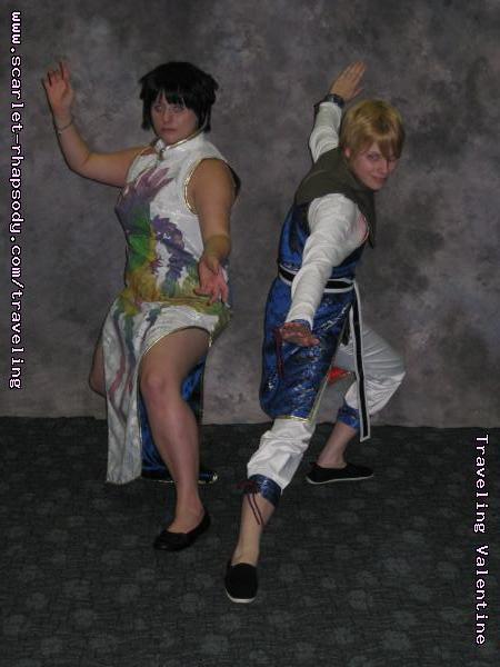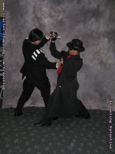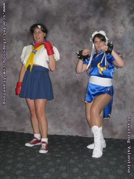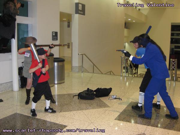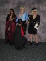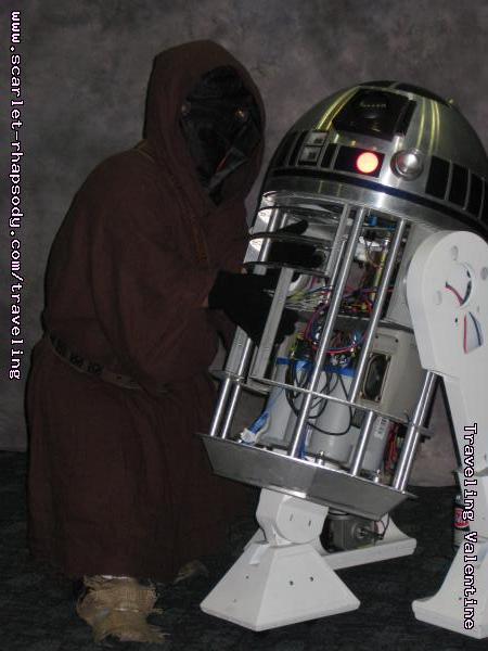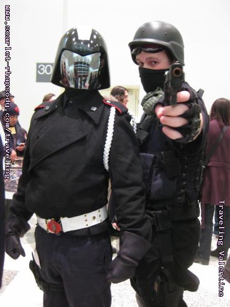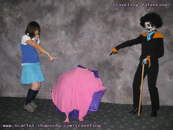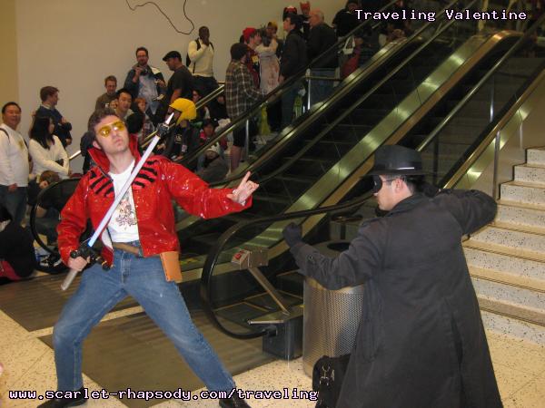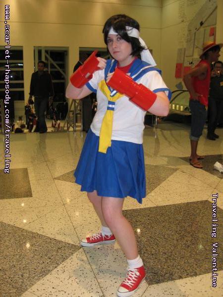 | If you ask the average costumer or cosplayer, Masquerade is the highlight of WonderCon and pretty much every convention. After shedding blood, sweat, tears, and funding to complete their costumes, costumers of various age and skill wanted to show the fruits of their labors on the stage of the Esplanade Ballroom. Whether through walk-ons or sketches, the costumed performers performed while the audience ooh'd and ah'd while the judges judged. Meanwhile, the trigger-happy members of the photographic Press would miss those performances in order to photograph those wonderful costumes backstage. We work hard and sacrifice hard for you. After dinner with Charie, Rose, Dennis, and Janelle Ann, I returned to the Moscone Center. Between stopping for photos, stopping to take photos, stopping to admire the long line, and stopping to figure out where Press had to go to get backstage, I killed a lot of time before finding my entry point. Following an unusually long detour through the service alleys, I found BART Boy, EBK Al, Mike, and other photographers setting up the photography area and getting angry at the caterers for removing the pasta and cheesecake we could have eaten during this long night. The official photographer for Masquerade judging shot Polaroids of the costumes to send to the judges. We managed to snap a few shots of a few costumes along with him before the official Masquerade. Kei and I volunteered as test targets for the backdrop. We came to blows just to see how The Spirit's abilities matched up against Death the Kidd's guns while determining the range for group shots. I got curious and checked out the technology used to display the video on the stage. The amount of equipment was mildly staggering. As we finalized the backdrop and firing squad positions, Phil Foglio the MC began the show and the costumes began trickling in after their performances. I shot what I could where I could. The average was 10 shots per act with an emphasis on covering fire. Whatever wasn't fuzzy or dark made it on here. One suggestion I would make for Masquerade is a printed list of the acts with the costumes and series from where they came. One large printout mounted backstage would make it easier to identify acts since some were not as familiar as others. As per my usual inability to remember who won what combined with not seeing any of the acts and the pressing need to catch one of the last BART trains of the night, I jetted home after the last act. I only stopped to snap a few pictures of costumes including a phallic Rorschach mask courtesy of Tog. On the BART station, I ran into Hoan, a previous acquaintance from the recent Animation on Display, and her cadre. We rode the BART together until I had to hit my transfer. It was a smooth trip home minus the fact I was still wearing my mask during most of the trip. Pictures are copyright by Traveling Valentine. If we took your picture, feel free to use it on your site or cosplay gallery. While you're here, do sign the guestbook. This site was brought to you by a font of some sort. Many thanks to Chaz Boston Baden for the image resizing and watermarking program. |